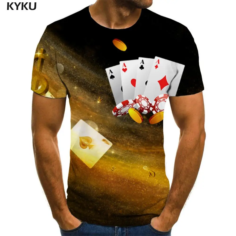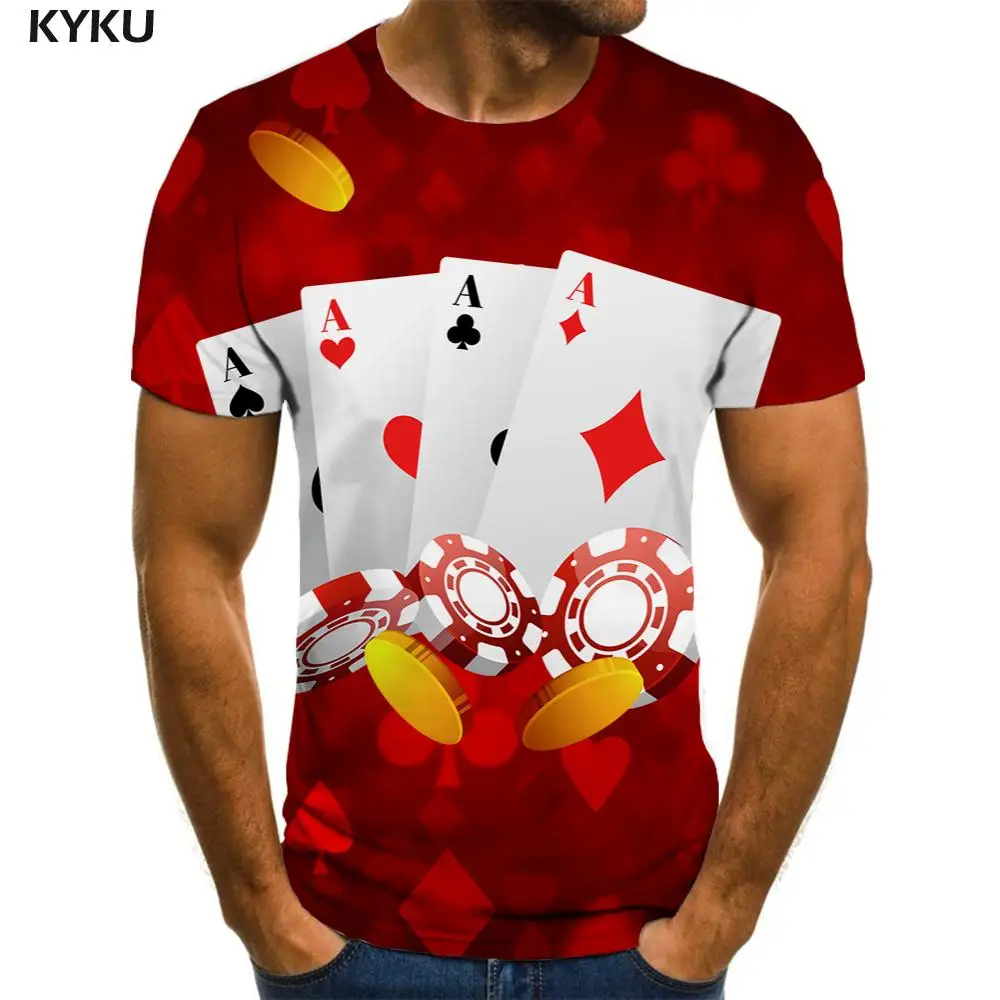 Футболка мужская с 3D-принтом игральных карт, рубашка с коротким ру...