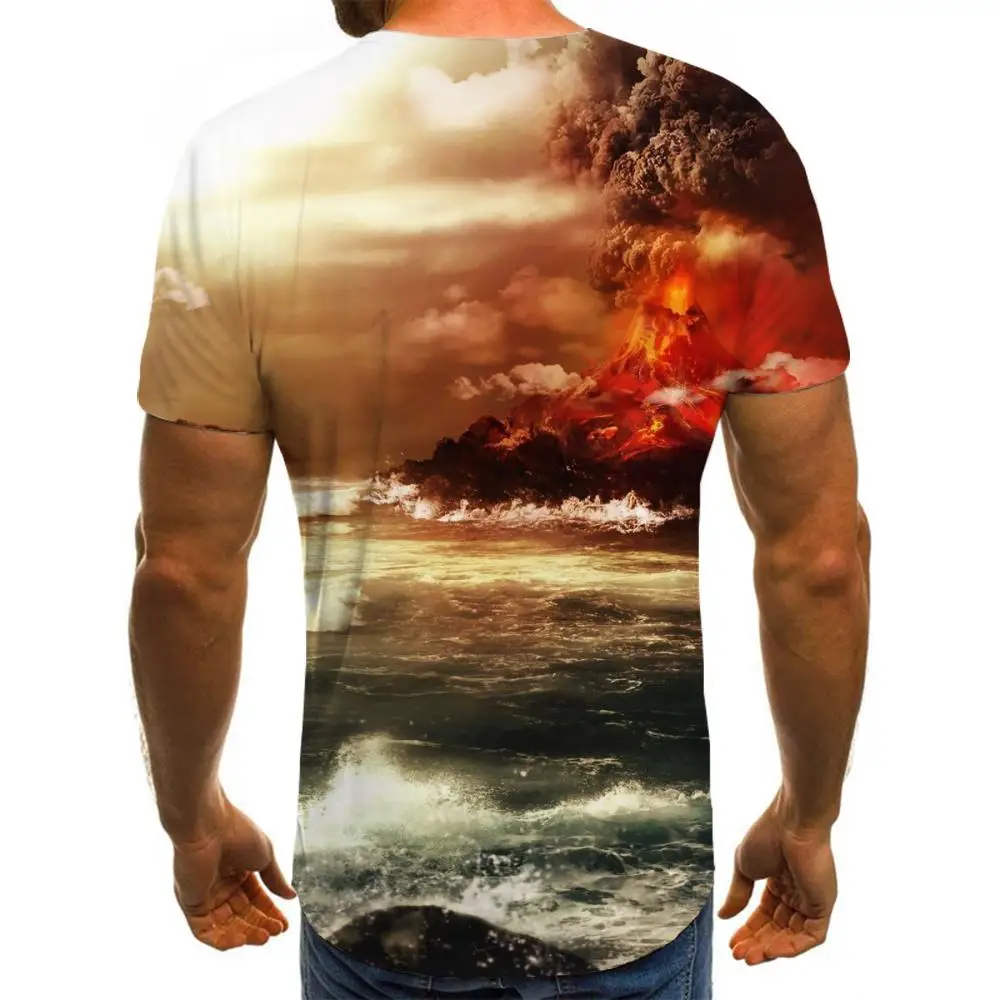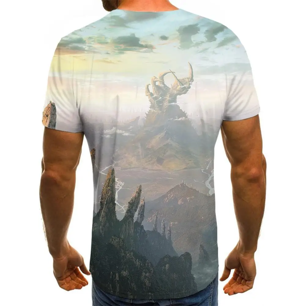 Футболка мужская с 3D-принтом пейзажа, повседневная приталенная тен...