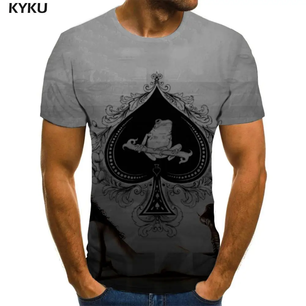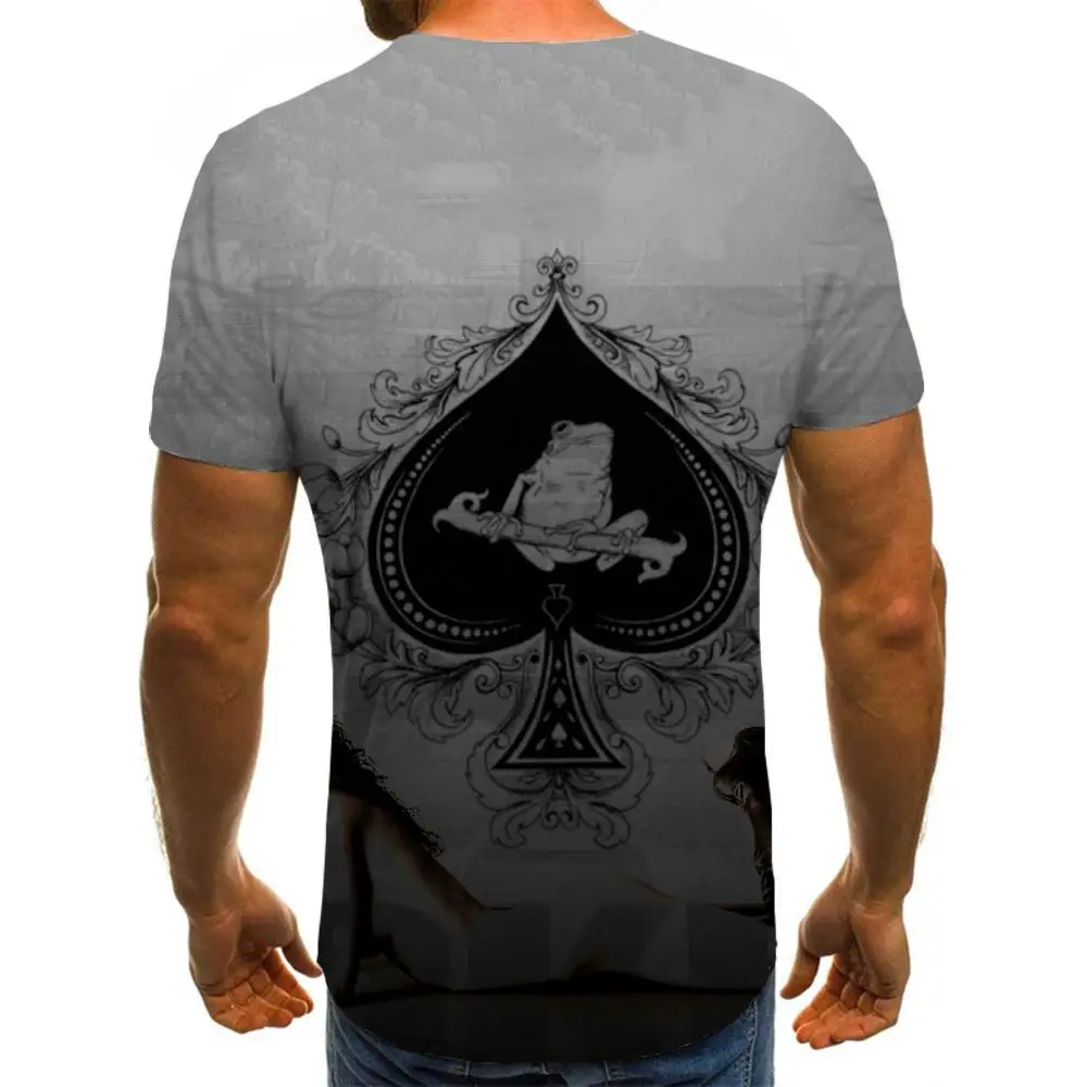 Футболка мужская с 3D-принтом игральных карт, серая рубашка с рисунком аниме, летняя одежда с принтом