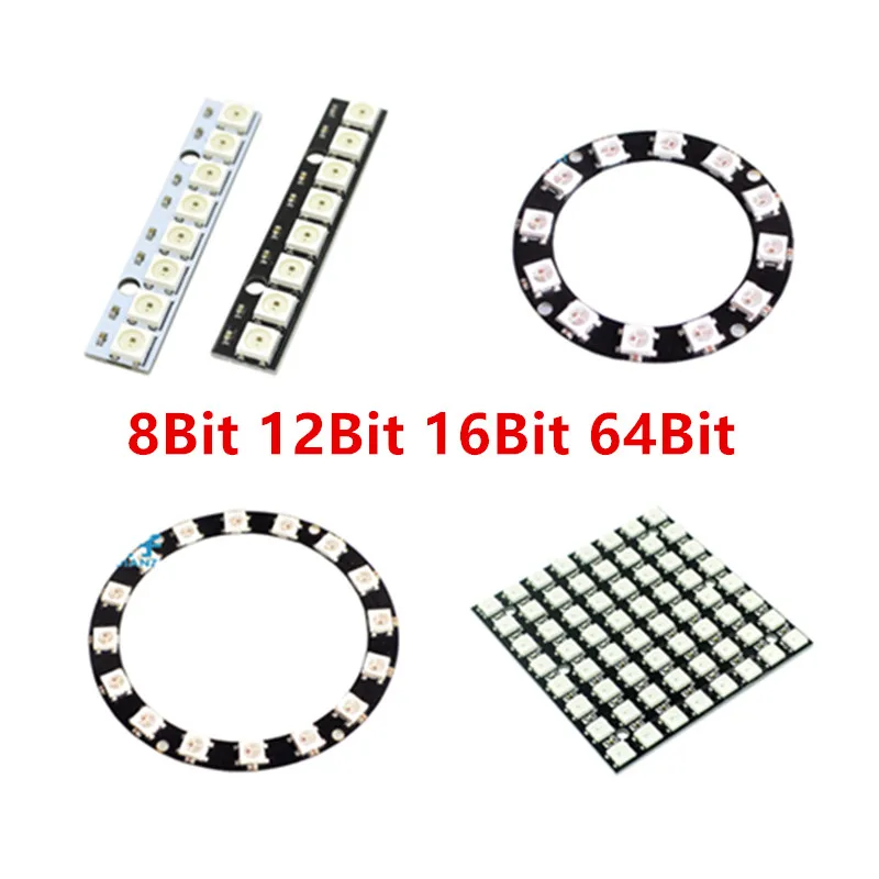 Светодиодное кольцо WS2812 RGB, 1 бит, 8 бит, 12 бит, 16 бит, 24 би...