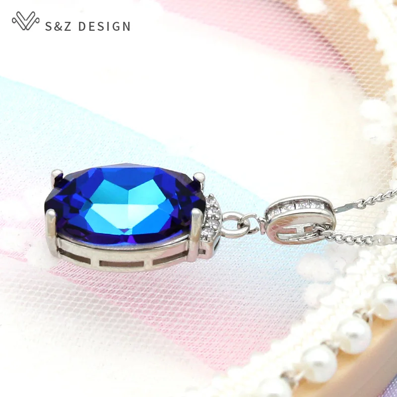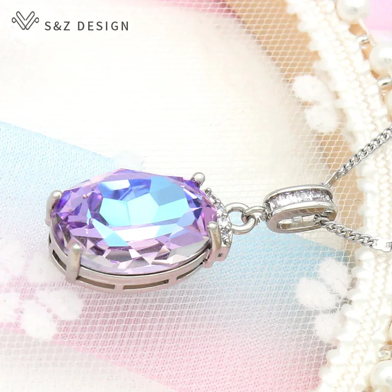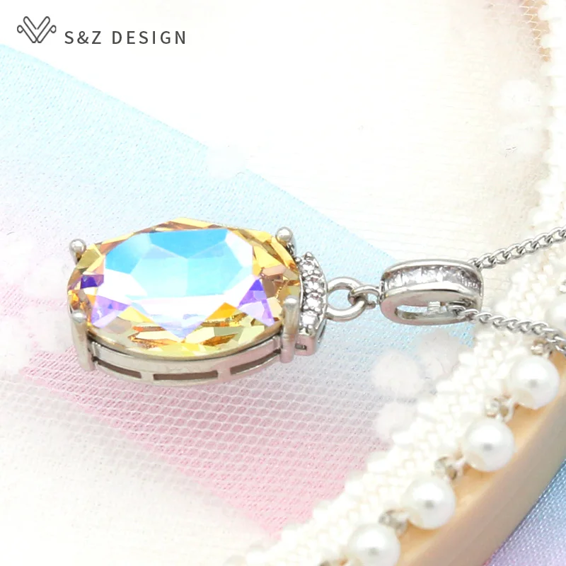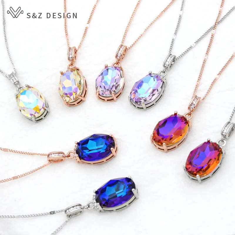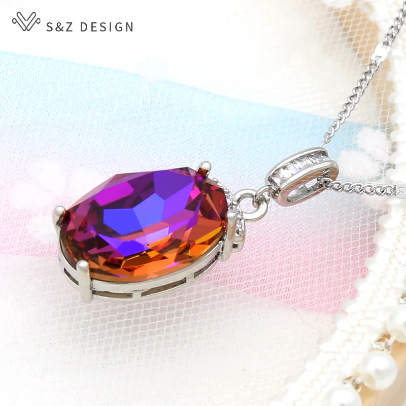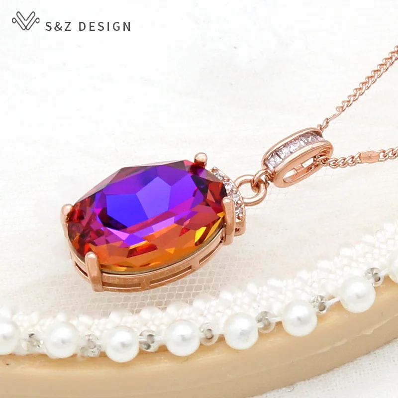 Женское ожерелье с крупным кристаллом S Z, модное элегантное роскошное овальное ожерелье с подвеской для девушек и женщин, ювелирные изделия для свадебной вечеринки, цепь из розового золота 585 пробы