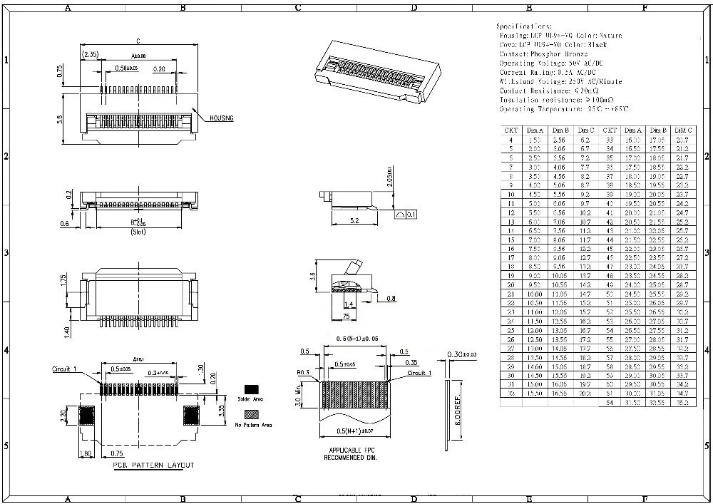 10 шт. 0,5 мм1 мм Шаг под раскладушку сокет FPC FFC плоский кабель СОЕДИНИТЕЛЬ 4P 5P 6P 8P 10P 12P 14P 16P 20P 22P 24P 30P 34P