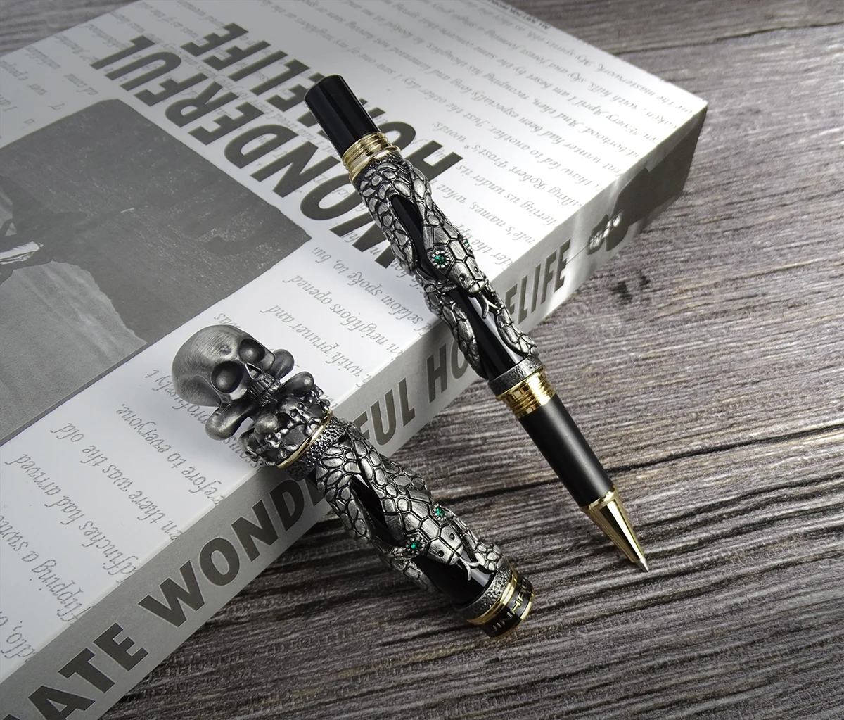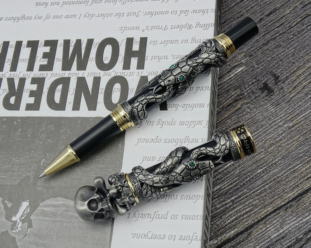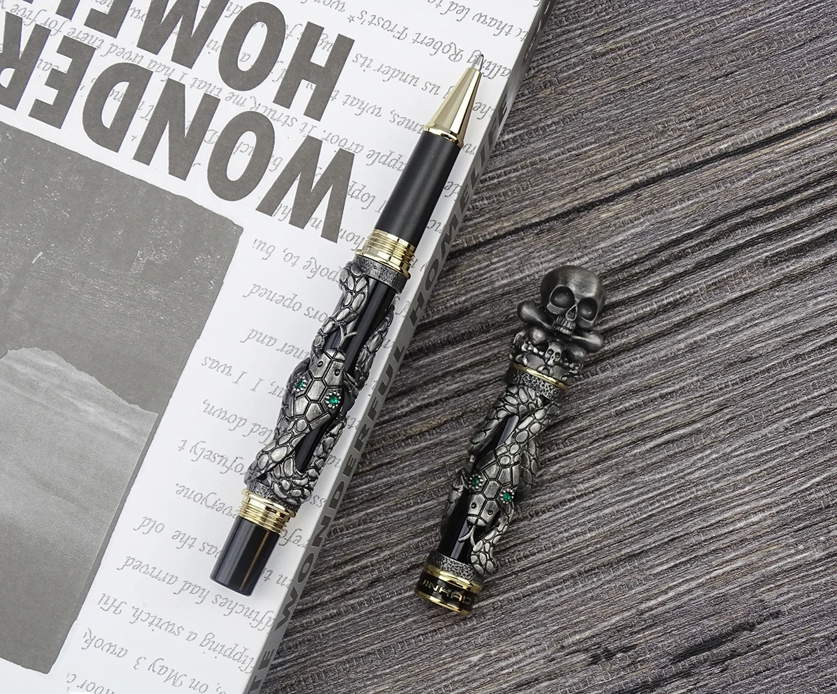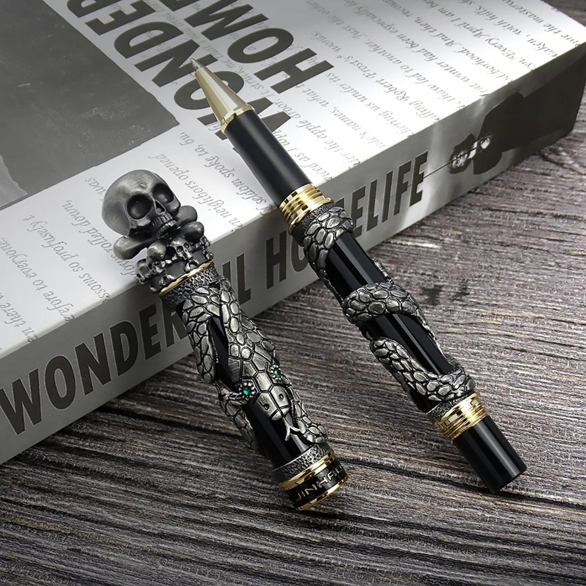 Jinhao металлическая винтажная шариковая ручка Череп Скелет уникальный колпачок для ручки точка 0,5 мм тяжелая коллекция древняя серая офисная подарочная ручка
