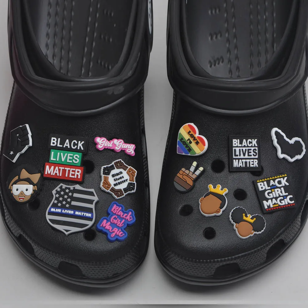 1 шт., подвеска из ПВХ в виде крокса, дизайнерская Черная пантера для крокса, черная живая материя, пряжка, заслуживает детского подарка