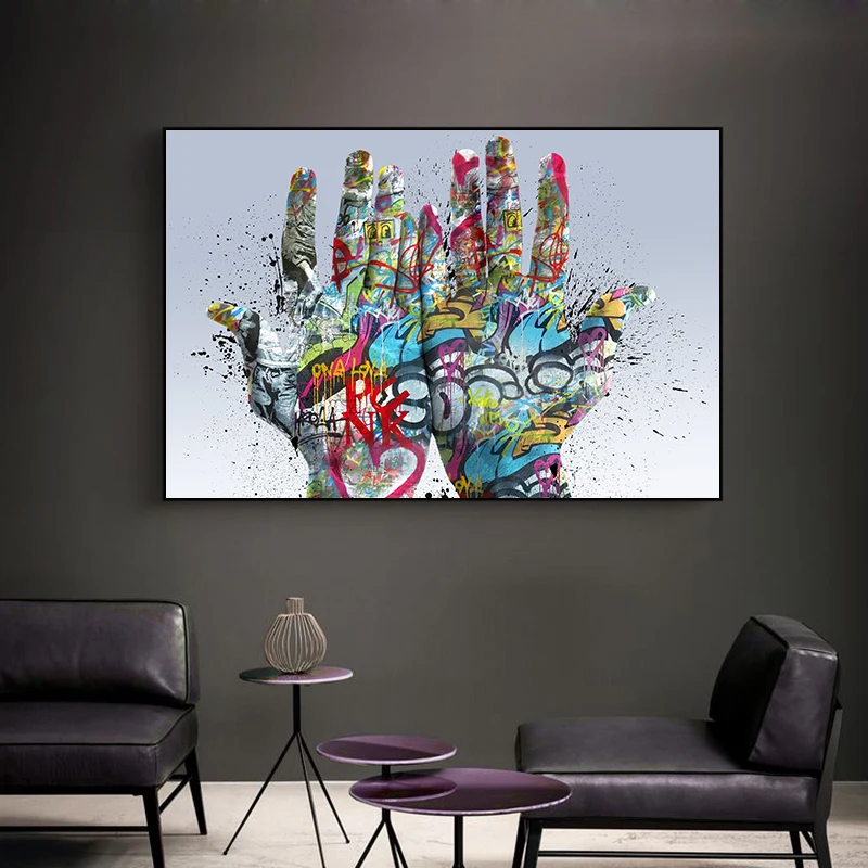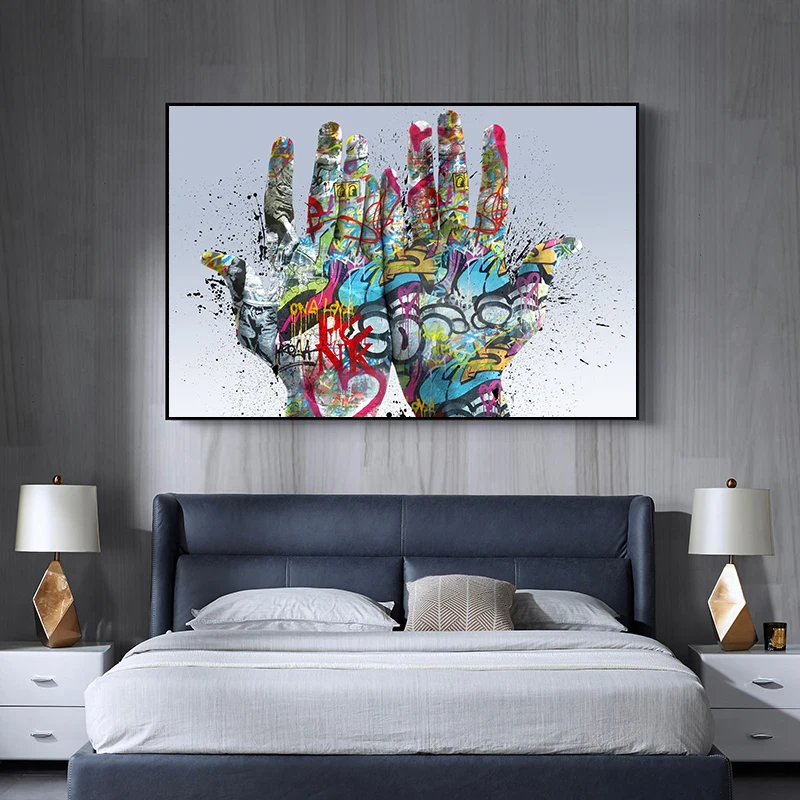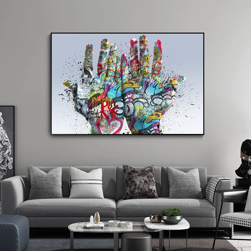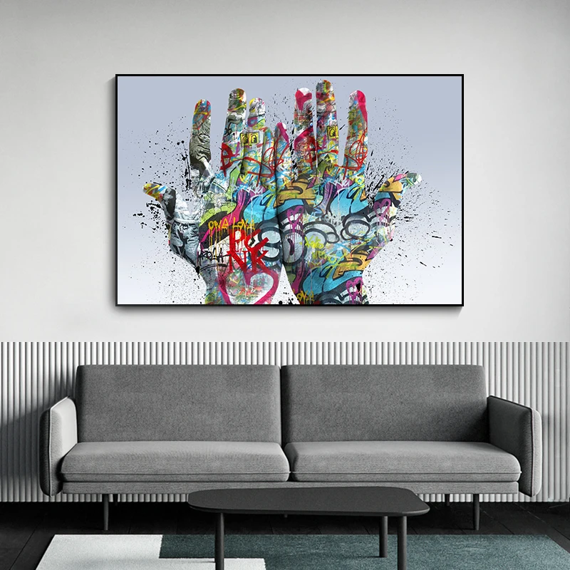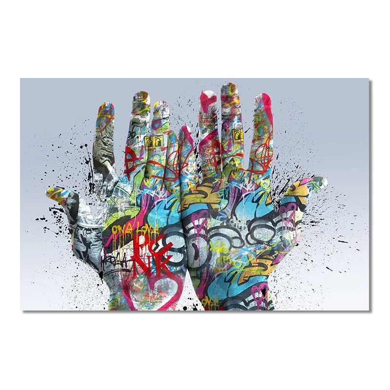 Картина две руки на холсте, плакаты и принты, Красочные уличные граффити, художественный Рисунок, креативная Настенная картина в скандинавском стиле для гостиной
