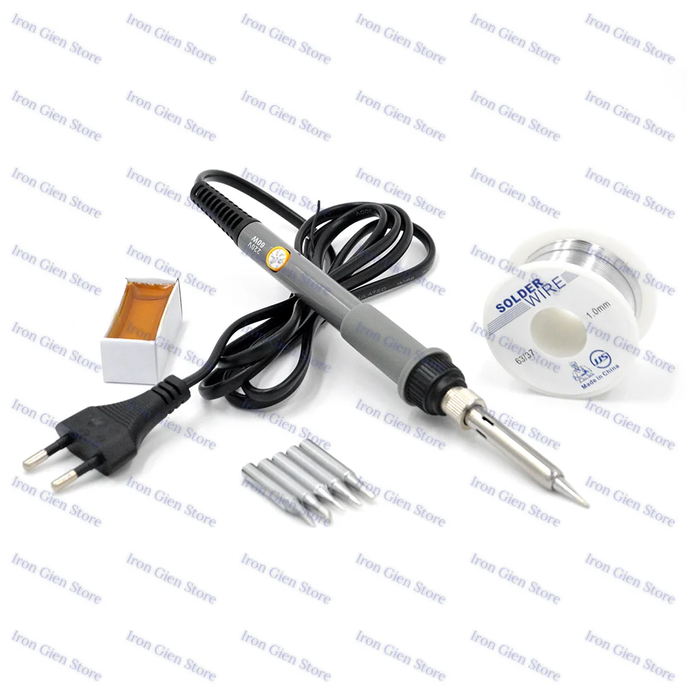 Электрический паяльный комплект для утюгов 220 В, 60 Вт, с вилкой Стандарта ЕС, с регулировкой температуры, с оловянной проволокой, 5 железных наконечников, сварочный пистолет, ремонтные инструменты