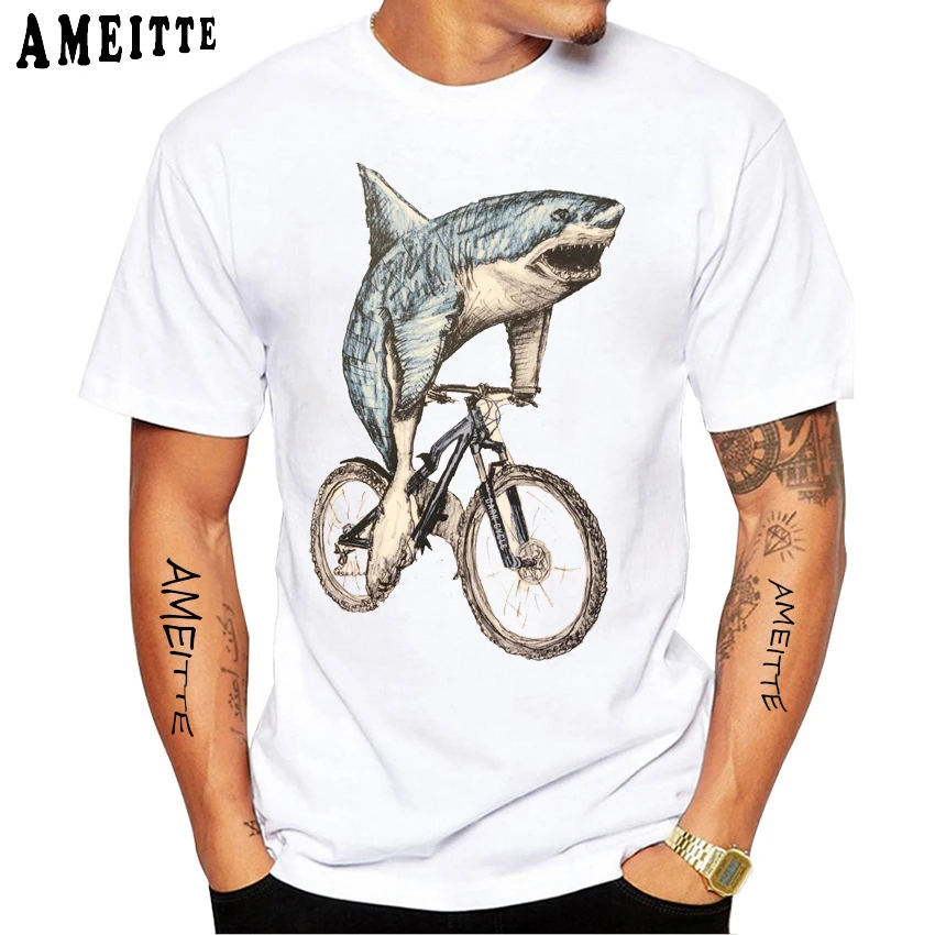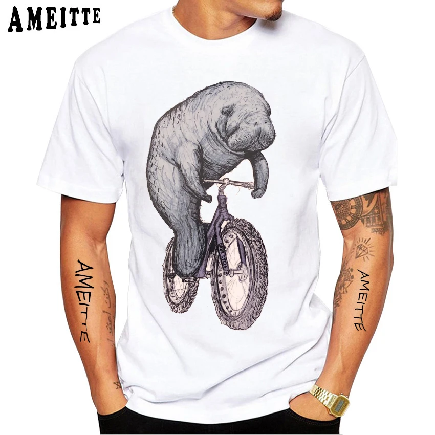Футболка мужская с черепахой и фиксированным велосипедом, Повседневная тенниска в стиле ретро, с короткими рукавами, в стиле хип-хоп, с забавным дизайном животных, белая, лето