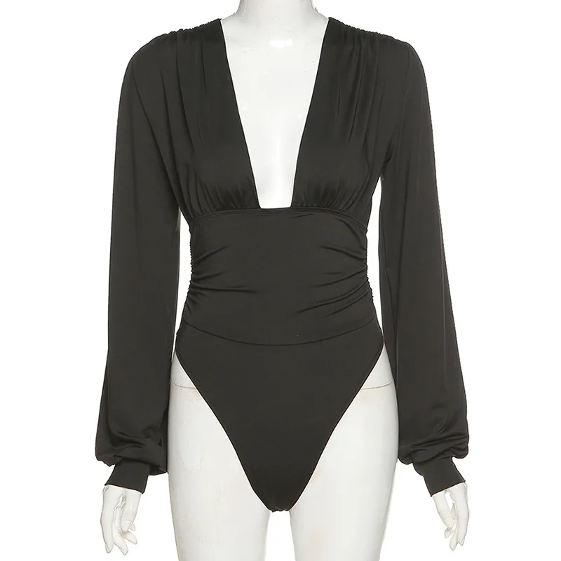 Сексуальное боди Nibber с глубоким V-образным вырезом и длинным рук...