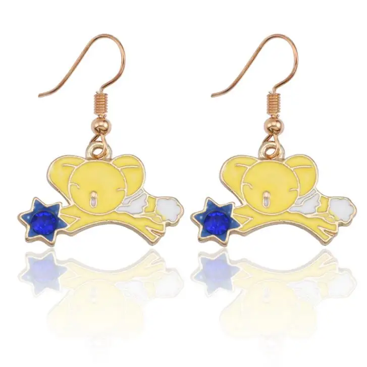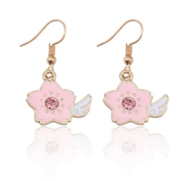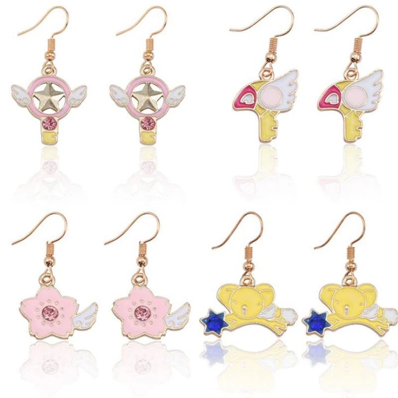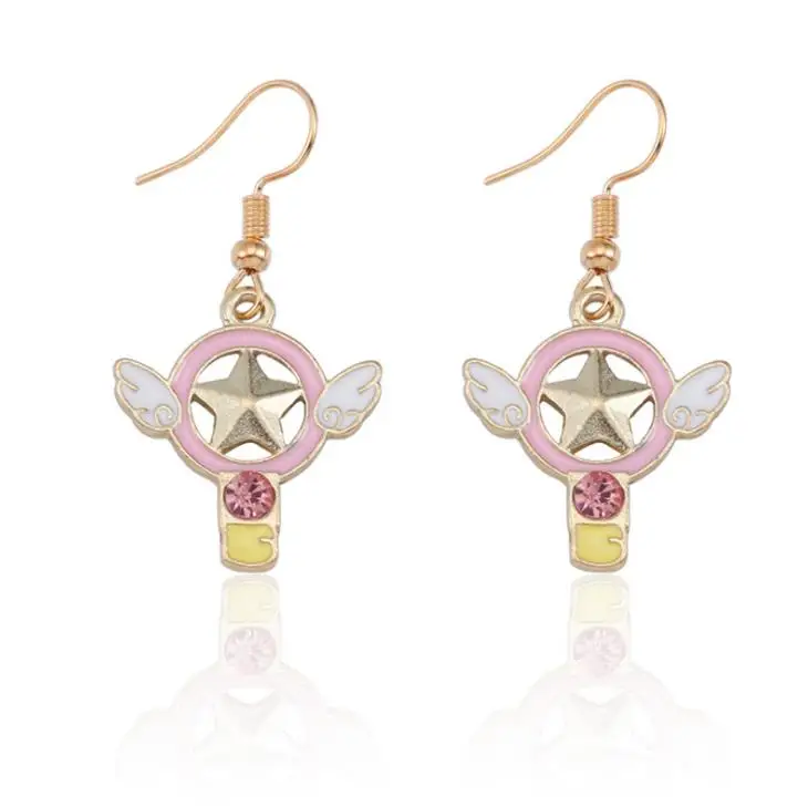 Кавайные серьги-капли В Стиле Аниме Сакура, 1 пара, серьги в виде волшебной палочки, крылья, косплей для женщин и девочек, ювелирные изделия, фигурки, подарки