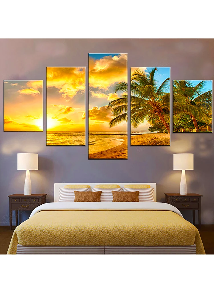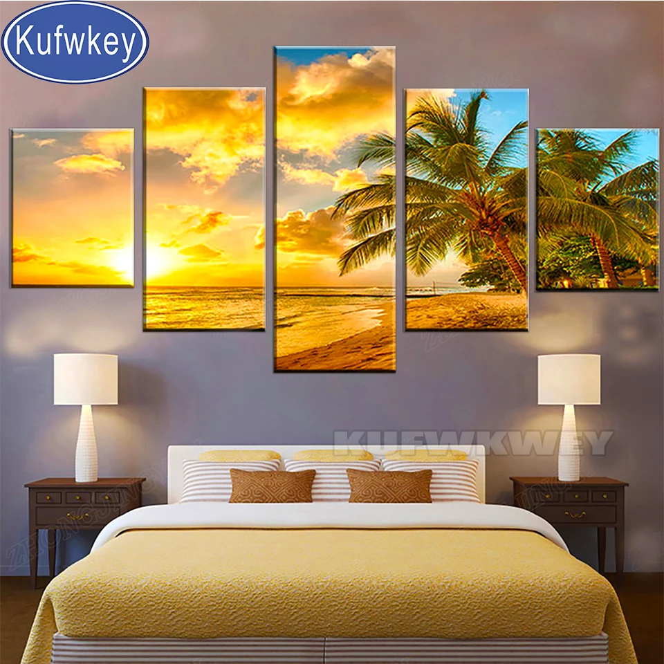 5 панелей пальмовых деревьев морской закат пейзаж 5d diy Алмазная картина Алмазная вышивка квадратная полная круглая дрель мозаика набор,