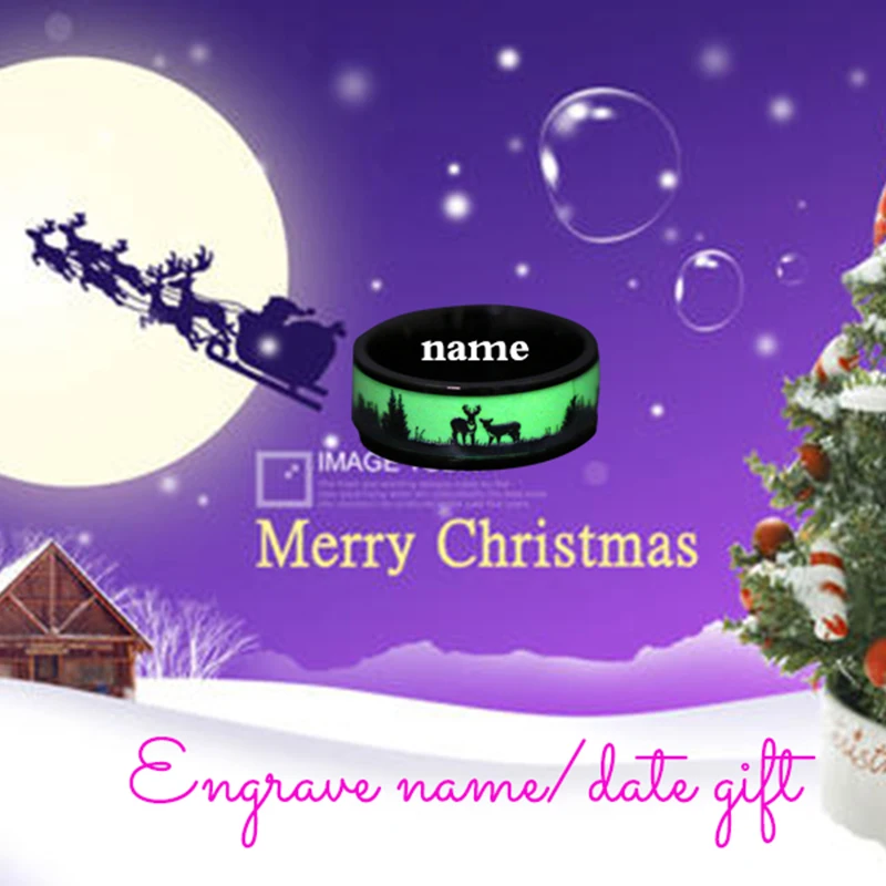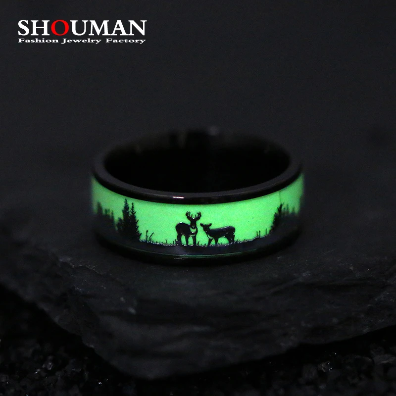 Обручальное кольцо SHOUMAN с гравировкой имени для мужчин и женщин, обручальное украшение со светящимся Лось под дерево, Подарочная бижутерия для помолвки и Рождества