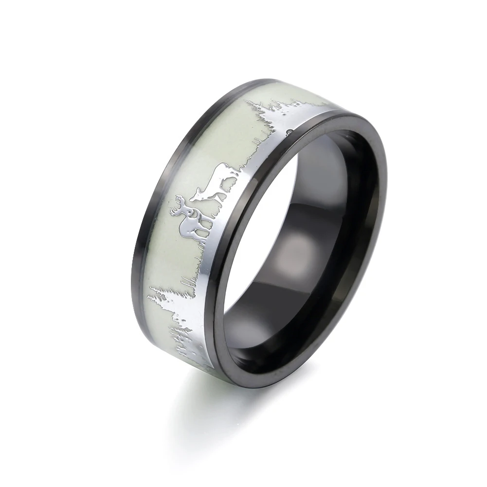 Модное светящееся черное вольфрамовое охотничье мужское кольцо ретр...