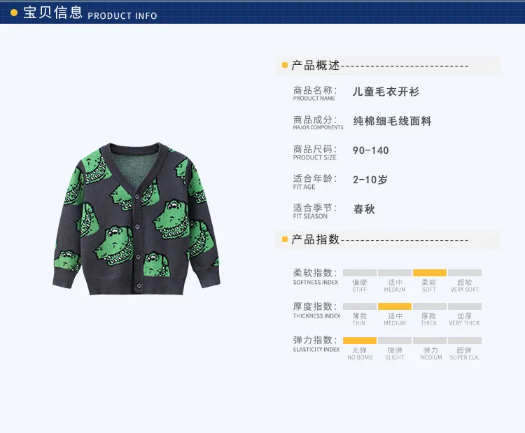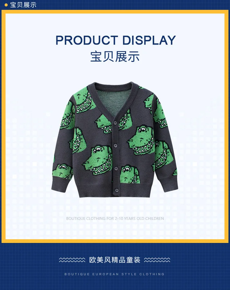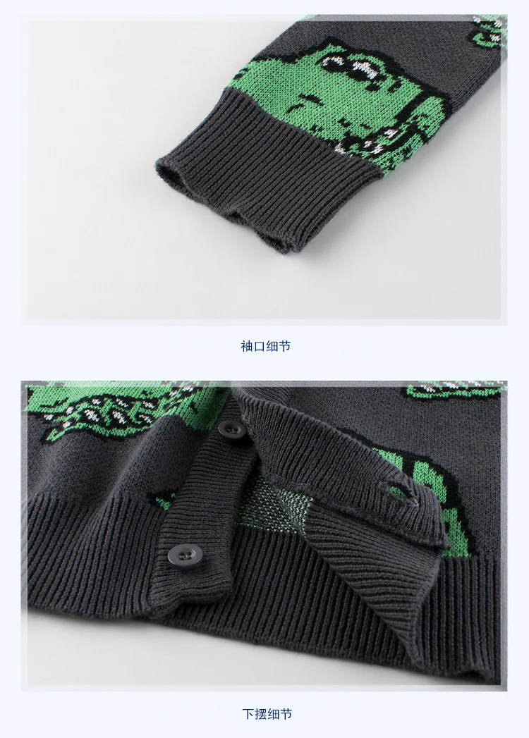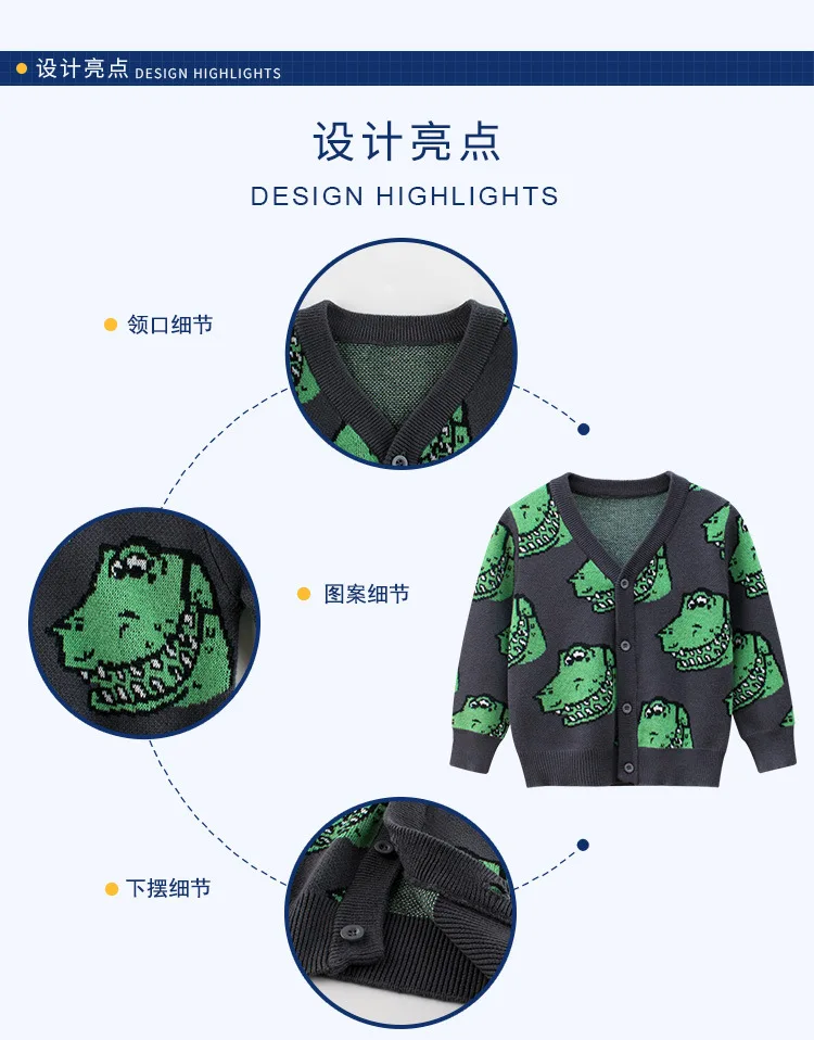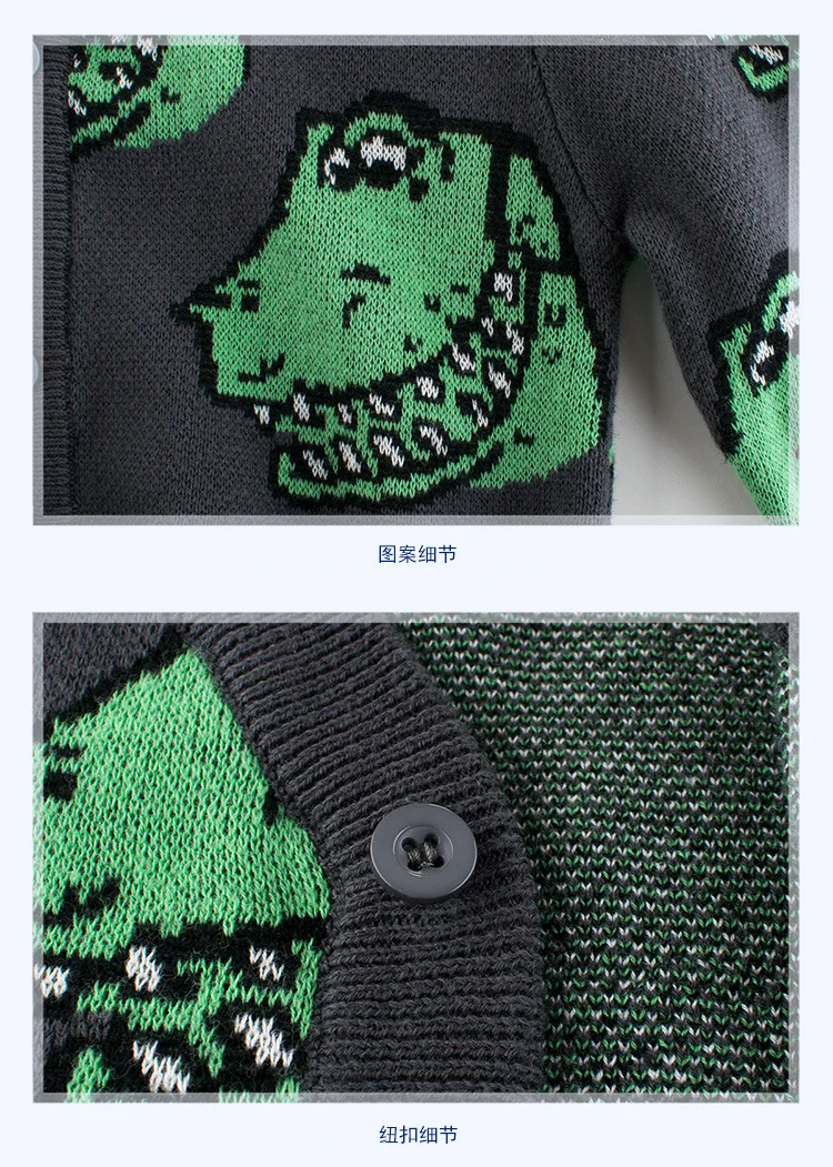 Вязаный кардиган для мальчиков, свитер на весну и осень, Детский свитер, пальто, Детский свитер с мультяшным крокодиловым принтом, модный зеленый свитер, 2020