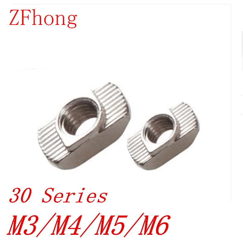 100 шт. T-гайка m3 m4 m5 M6 гайка молоток гайка алюминиевый разъем Т-крепежная гайка никелированная углеродистая сталь для алюминиевого профиля 3030