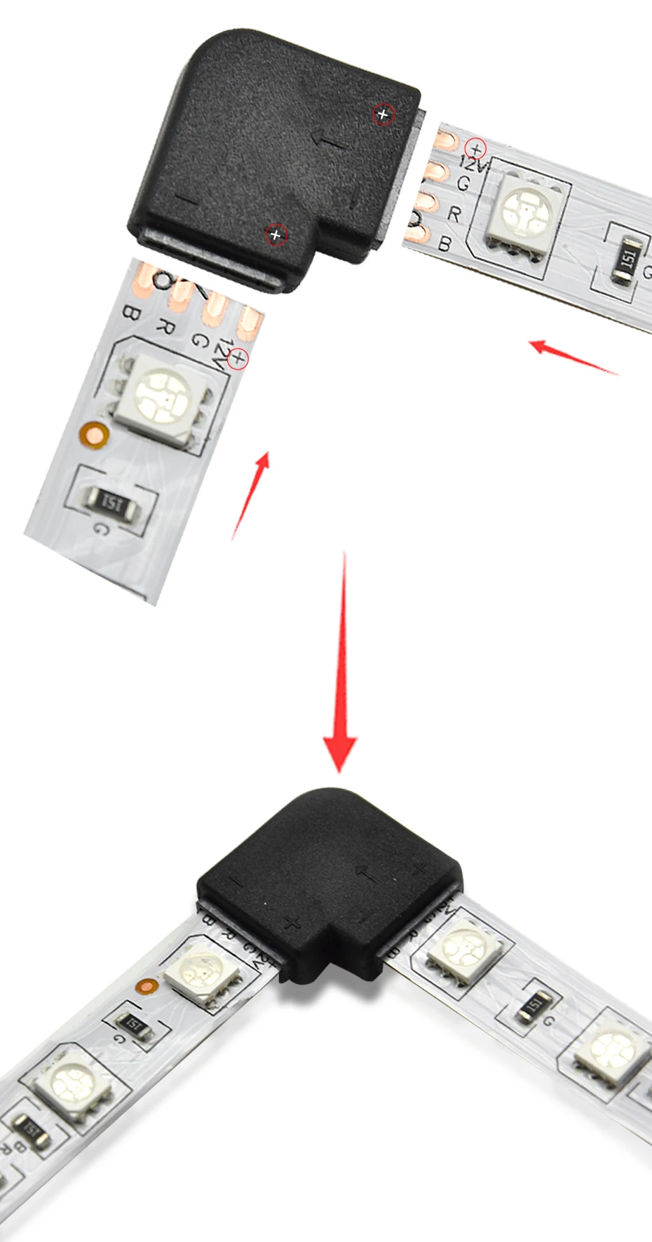 Светодиодная лента 5050 RGB, L-образный разъем для подключения углов, 10 мм, 5 шт.