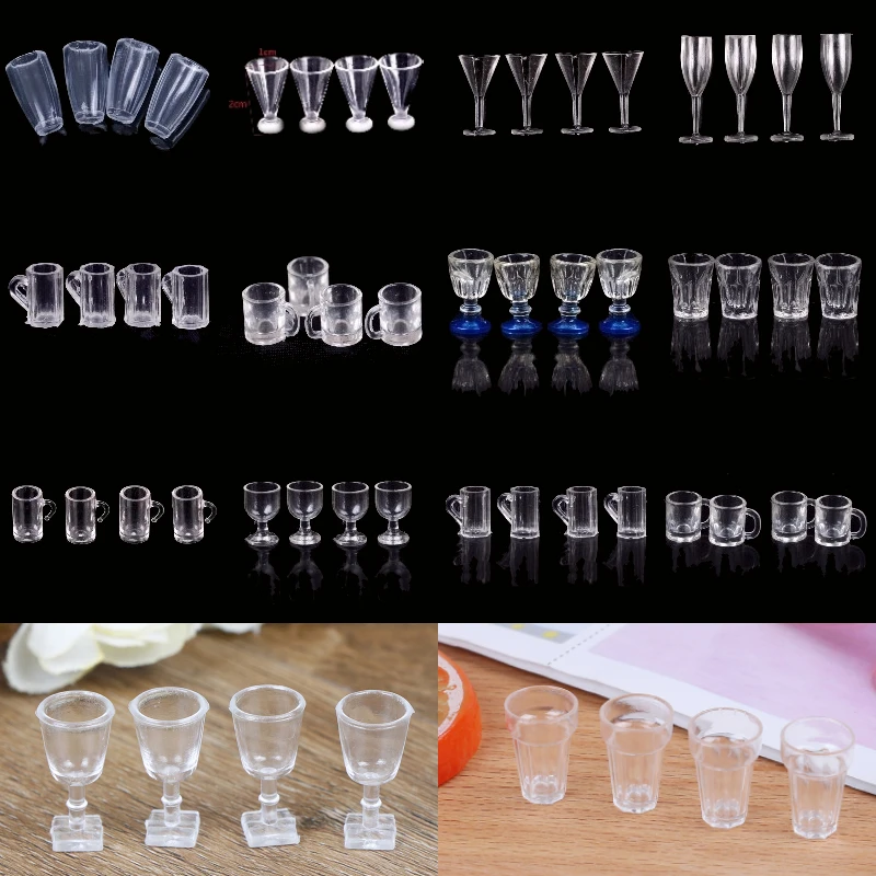 4 шт. 112 миниатюрные полимерные прозрачные чашки, модель мебели, игрушки для декора, Миниатюрные аксессуары для кукольного домика
