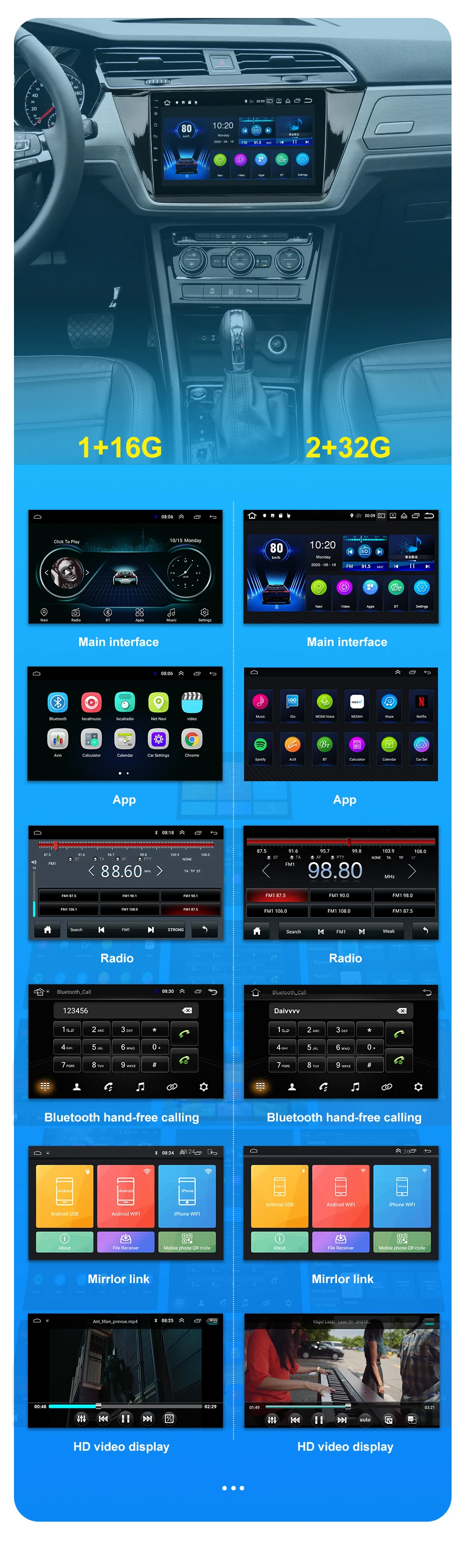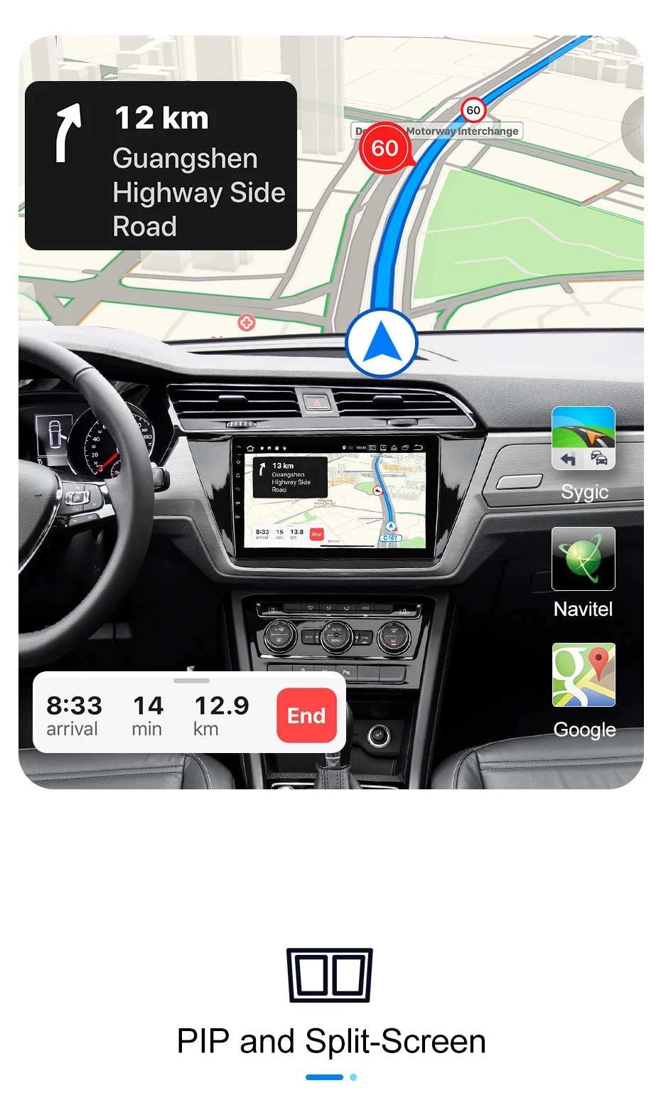Изображение на картинке и сплит-экран> Видео всегда отображается в inset windows, вы можете установить размер видео интерфейса, как вам нравится.> Экран головного устройства может отображать два приложения одновременно. (не может одновременно отображать два аудио приложения)