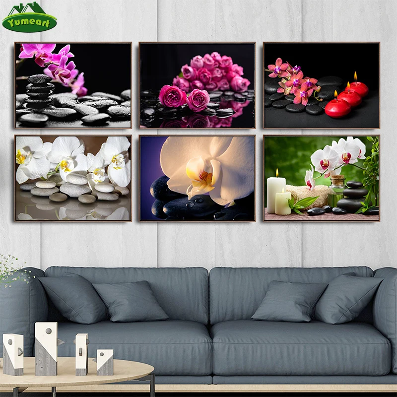 Цветы фаленопсиса постеры и принты Орхидея и дзен камень настенная живопись холст картины комната Yoka Декор для гостиной
