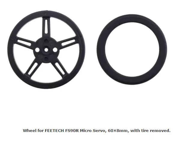 Это черное пластиковое колесо нажимается на вал выходной шестерни FS90R и легко делает отличное приводное решение для небольших роботов. Колеса имеют силиконовые шины и измеряют 60 мм (2,36 ″) в диаметре. Два дополнительных монтажных отверстия для 3-40 винтов позволяют использовать колесо с несколькими из монтажные втулки.