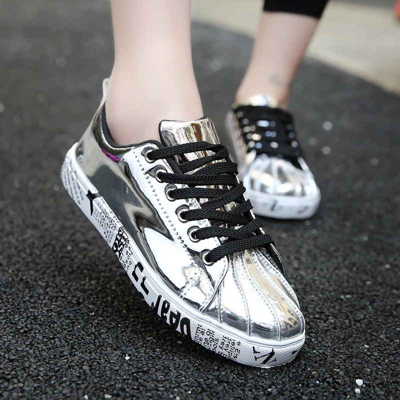 Кроссовки для Скейтборда для мужчин и женщин, лакированная кожа, пл...
