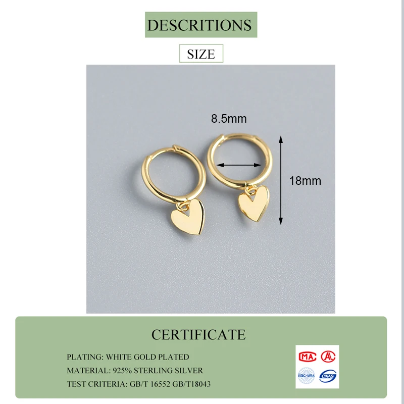 Женские серьги-кольца INZATT из настоящего серебра 925 пробы в форме сердца, милые минималистичные аксессуары из 18-каратного золота