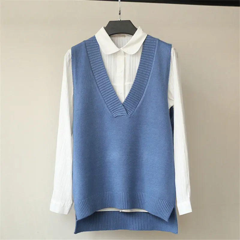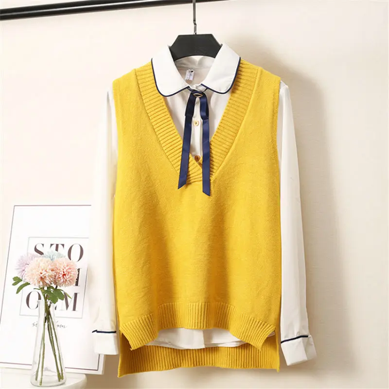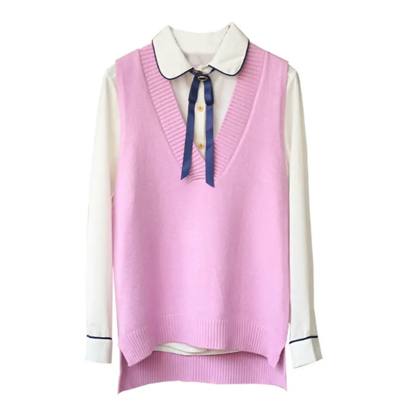 Женский вязаный жилет с V-образным вырезом, осенне-зимний свободный свитер в Корейском стиле, розовый жилет, студенческий свитер без рукавов SA368