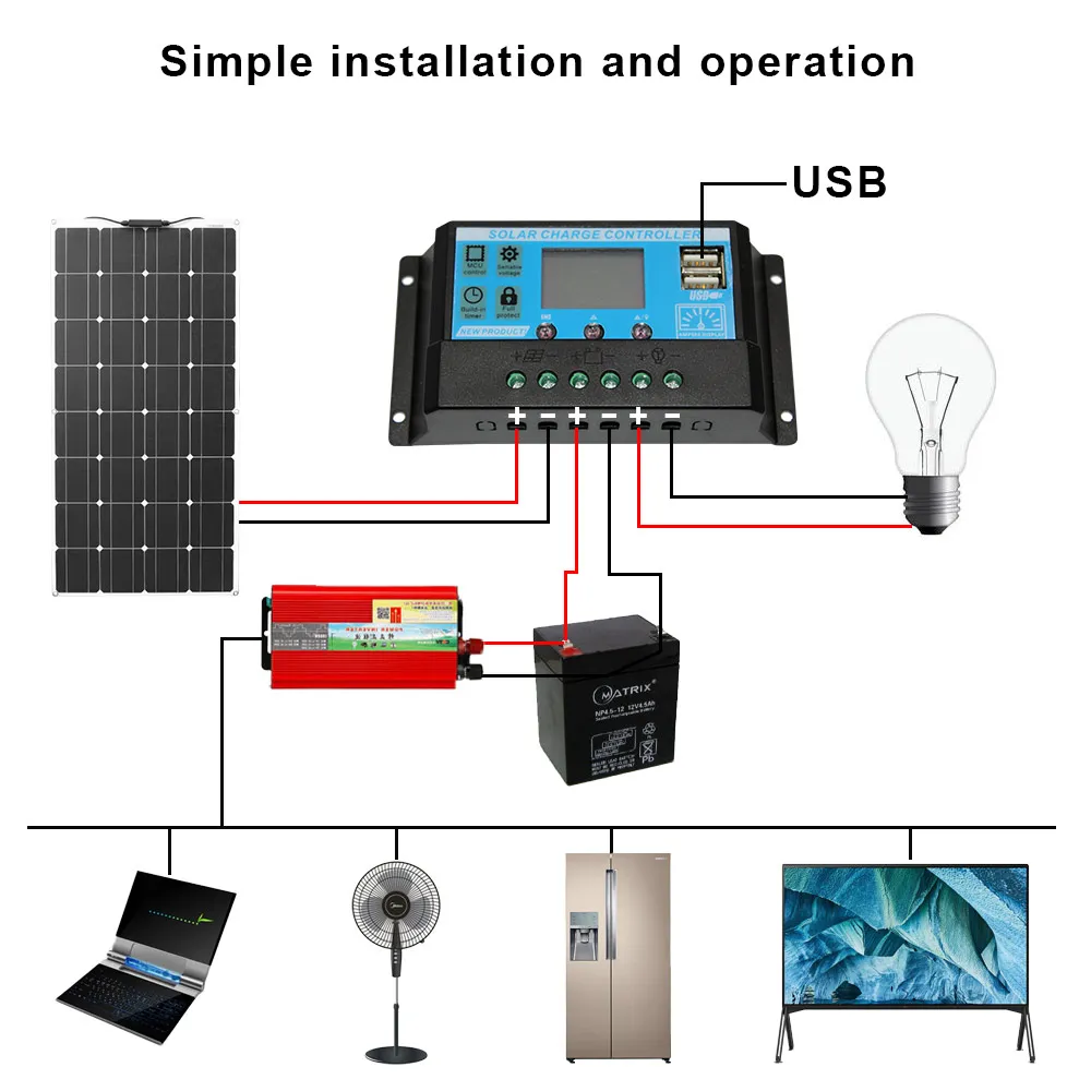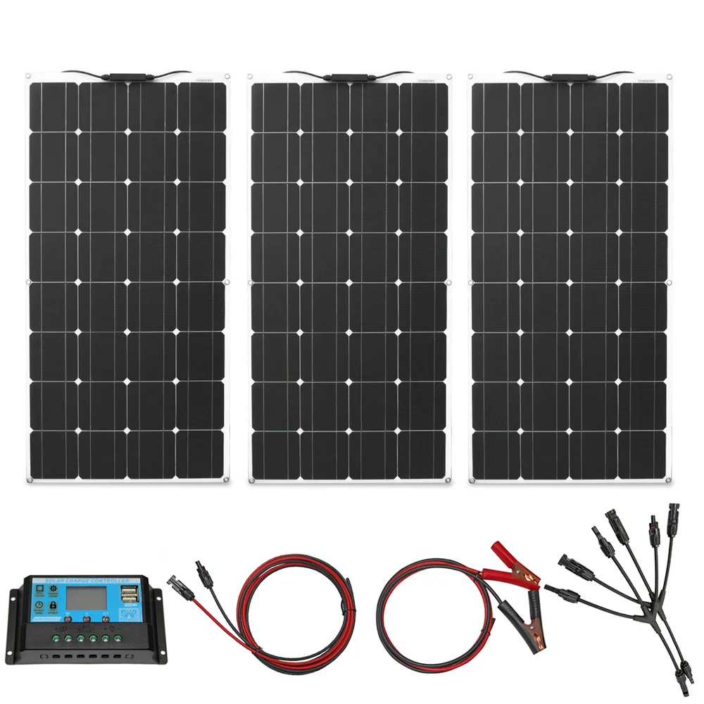 Набор гибких солнечных панелей 12 В, 100 Вт, 200 Вт, 300 Вт, для дома, с регулятором 10 А, 20 А