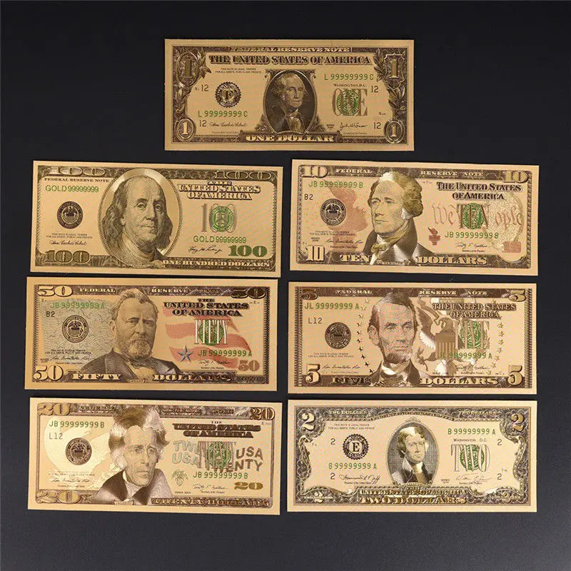 Позолоченные банкноты, 7 шт.лот, для коллекции, для домашнего декора