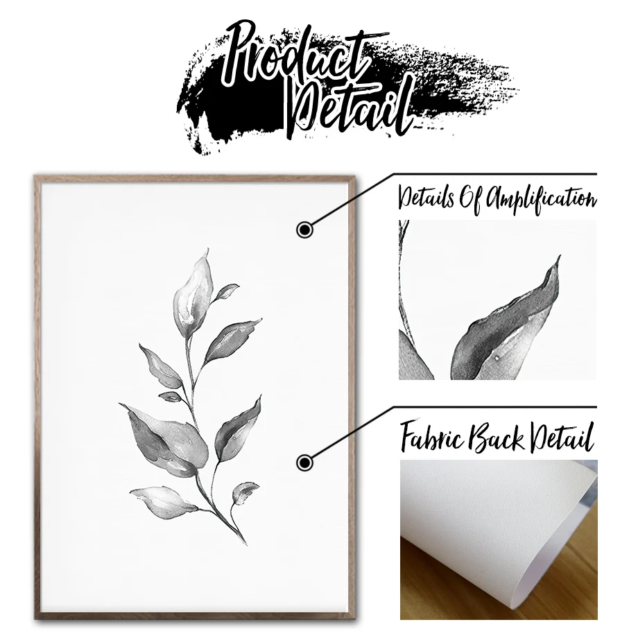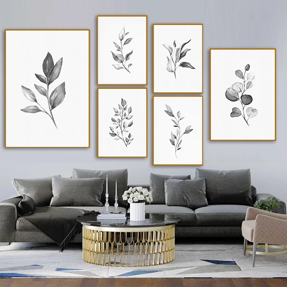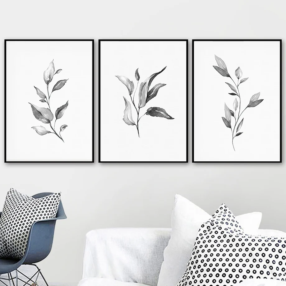 Черно-белый карандаш с листьями растений, настенная Картина на холсте, скандинавские постеры и принты, пейзаж, настенные картины для декора гостиной