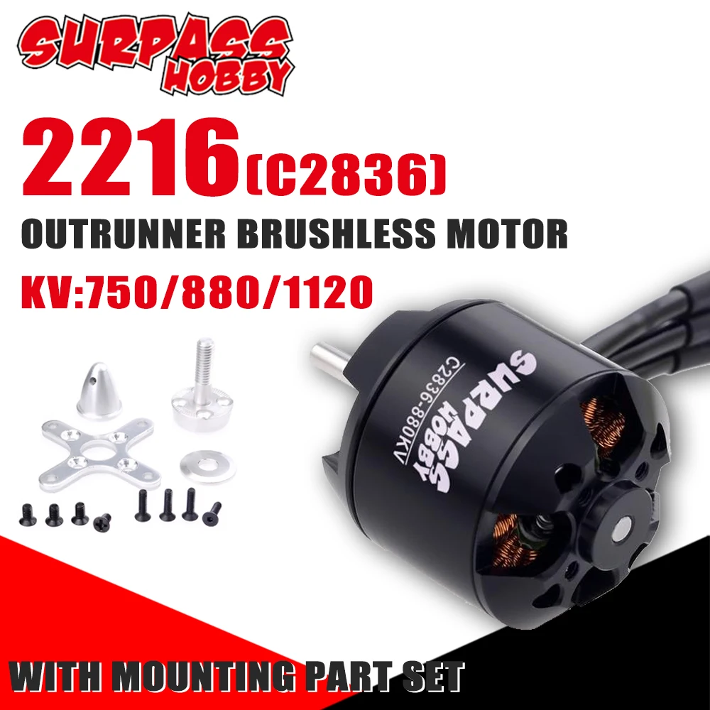Surpass Hobby 2216 бесщеточный мотор Outrunner C2836 14 полюсов 750KV 880KV 1120kv для FPV квадрокоптера Rc самолета с фиксированным крылом двигателя