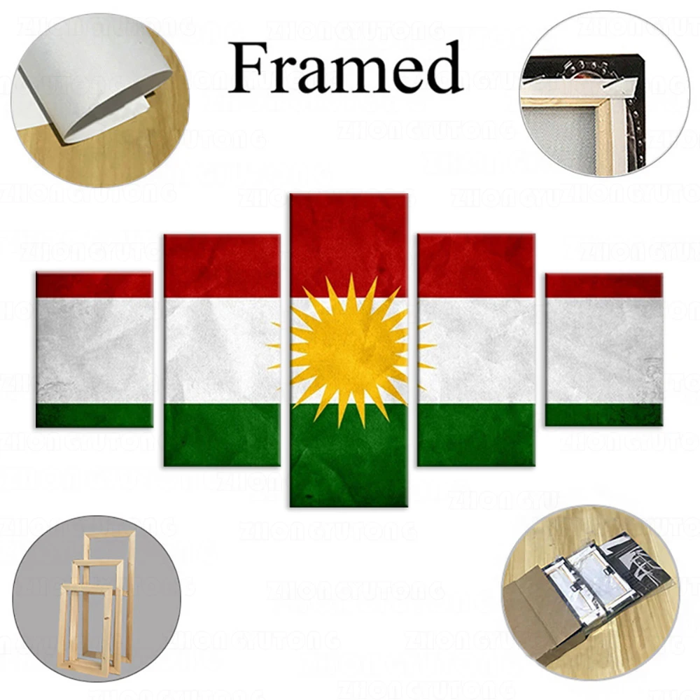 Флаг Курдистана, HD холст, 5 шт., картина маслом, печатный плакат, настенное искусство, современная картина для гостиной, домашний декор, рамка