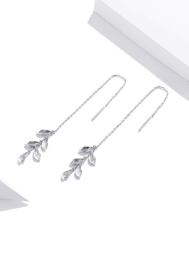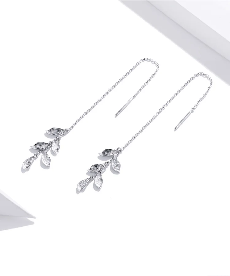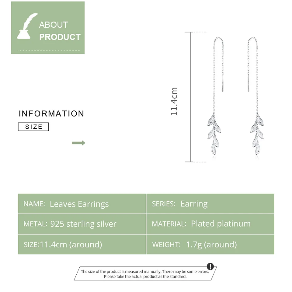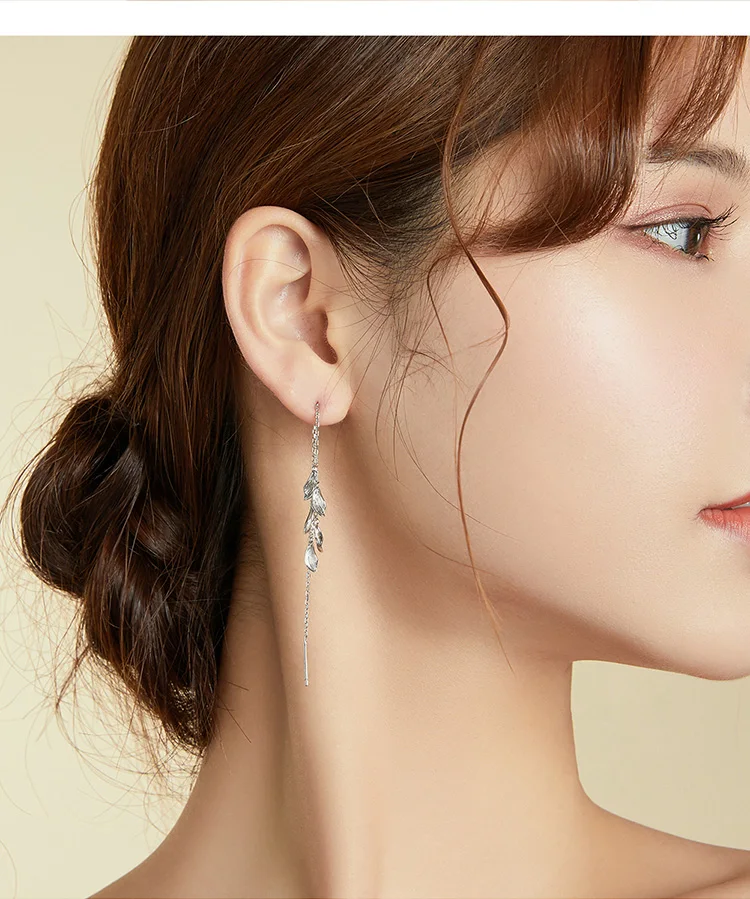 Женские длинные серьги-подвески в виде листьев, из серебра 925 пробы