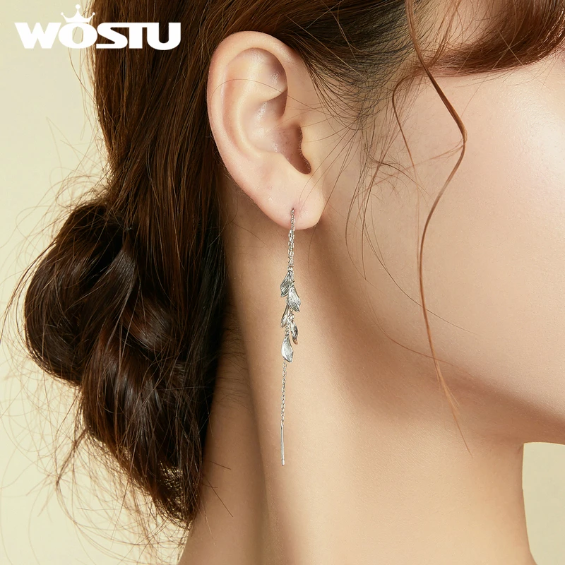 Женские длинные висячие серьги WOSTU, из серебра 100% пробы, с летя...