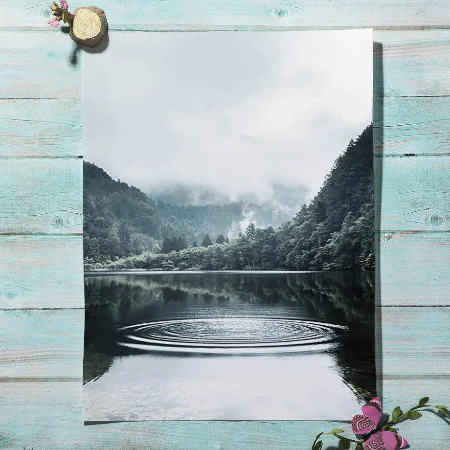 Настенный абстрактный постер с рисунком туманного восхода озера пля...
