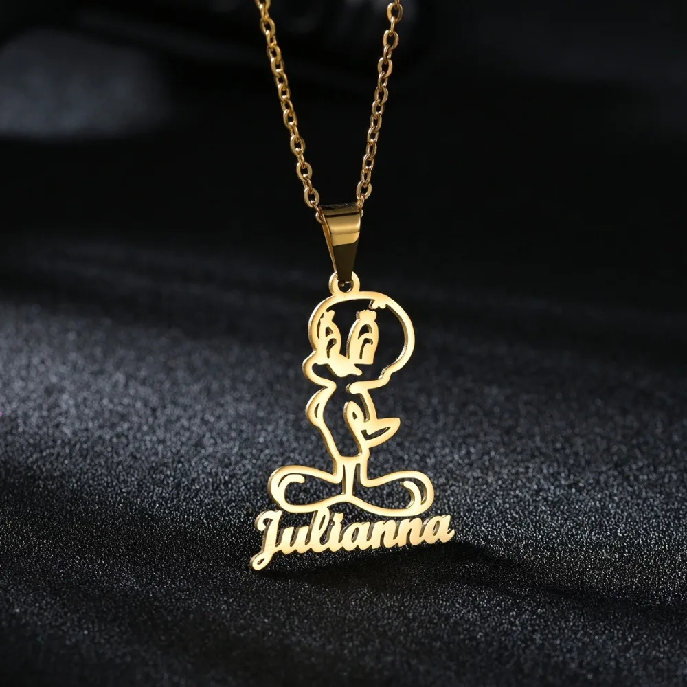 Ожерелья с именем персонажа мультфильма на заказ, подвески, детские рисунки с именем, персонализированная табличка с именем, ожерелье любого дизайна для подарка