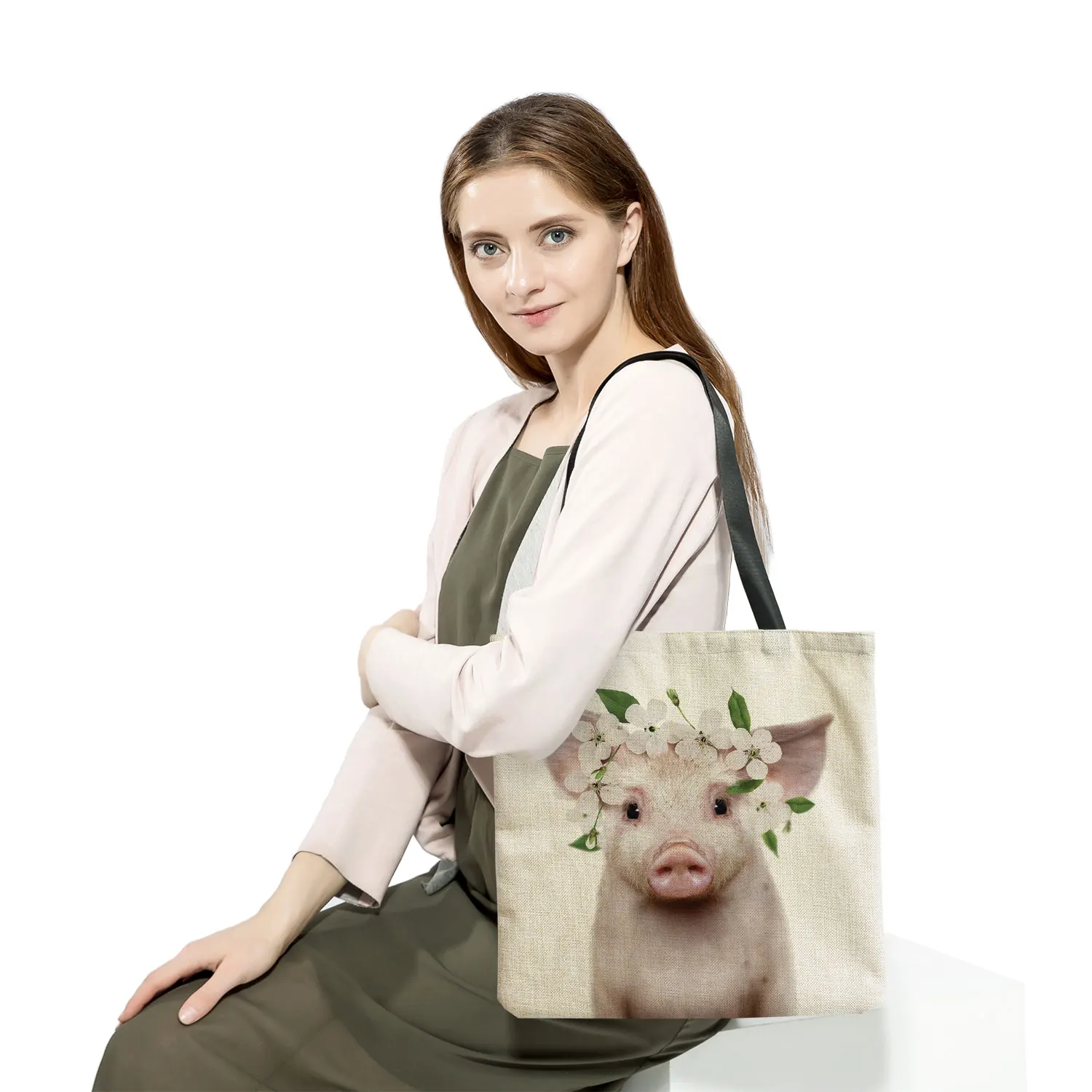 Женская сумка-шоппер, универсальная вместительная сумка через плечо, с мультяшным принтом животных, 2021