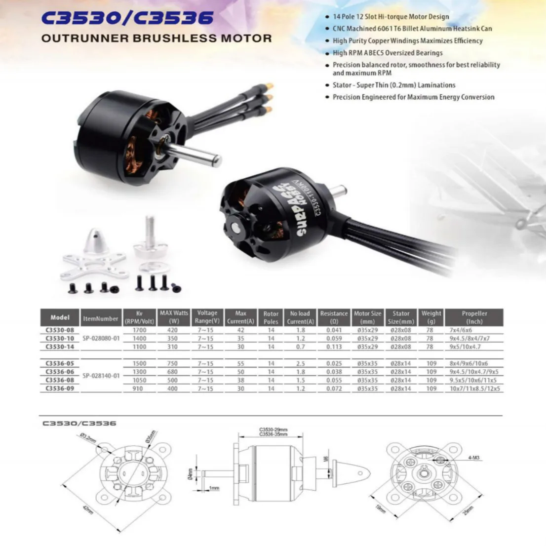 Бесщеточный двигатель Surpass Hobby 2808 C3530 1100KV 1400KV 1700KV, 14 полюсов для РУ самолета, мотор с неподвижным крылом, запчасть для дистанционного управления