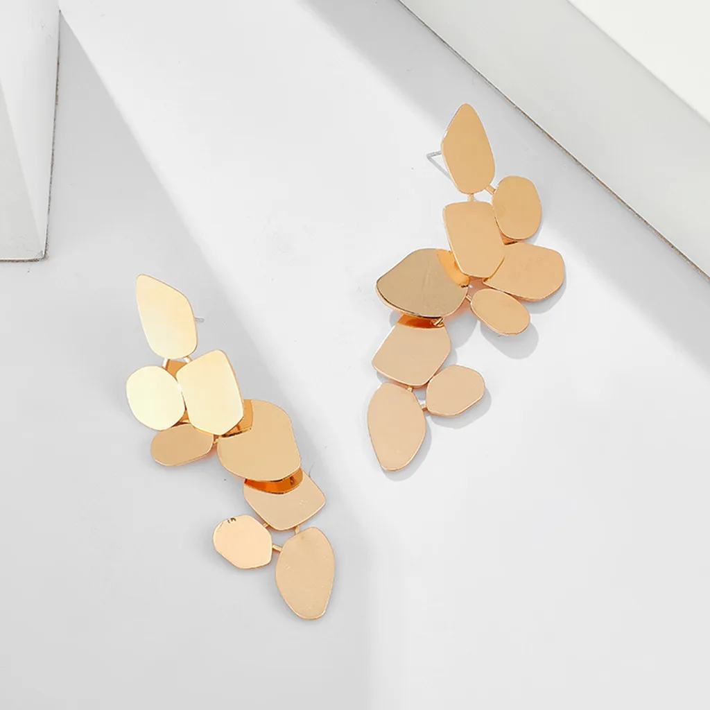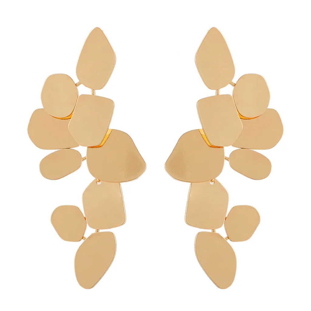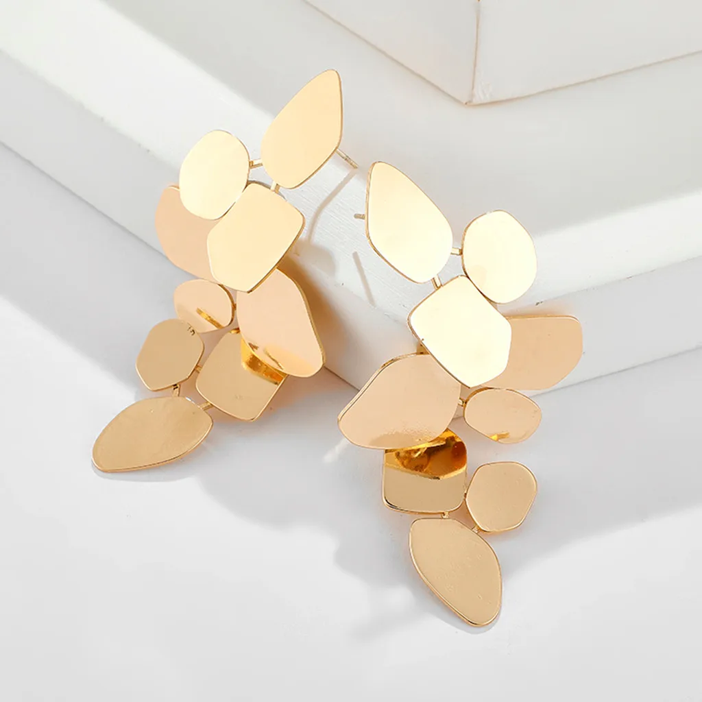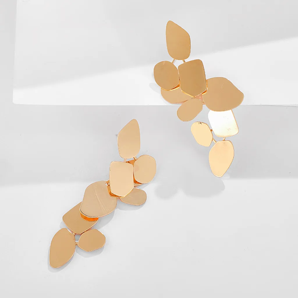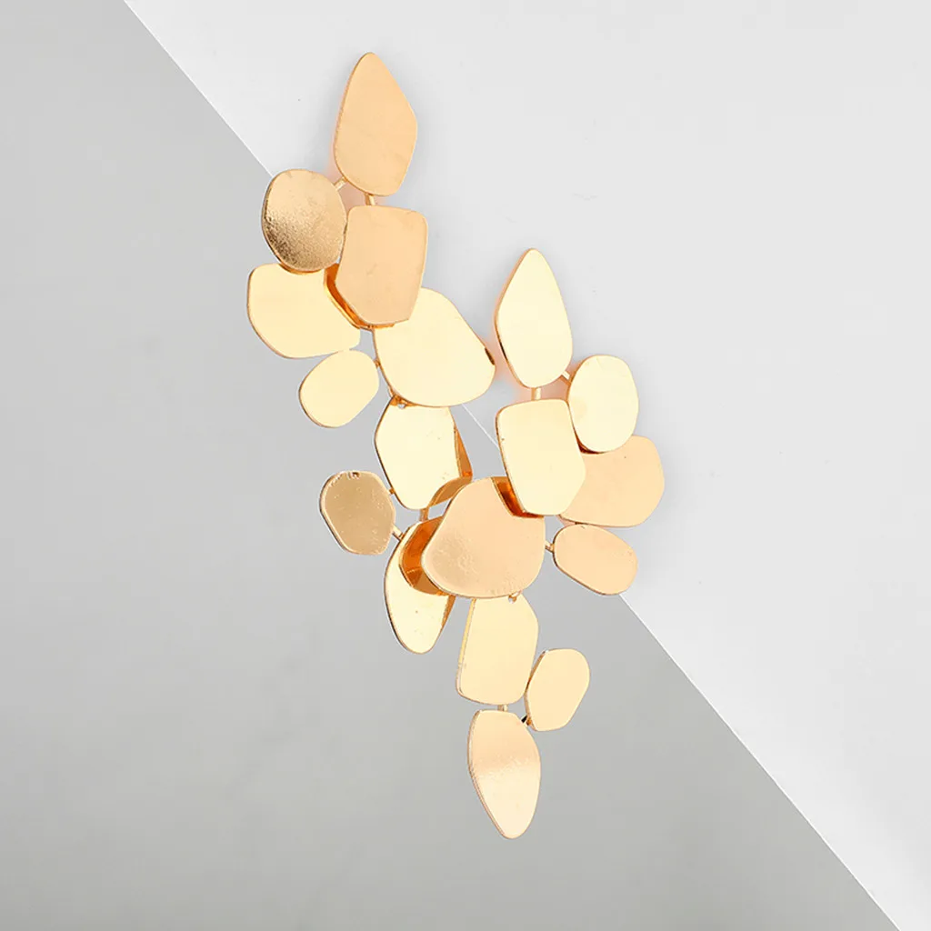 2020 модные золотые длинные кисточки толстые шианские преувеличенные несимметричные листья длинные висячие серьги-гвоздики для ушей на День святого Валентина
