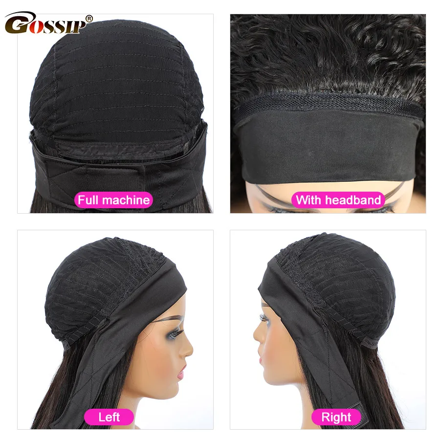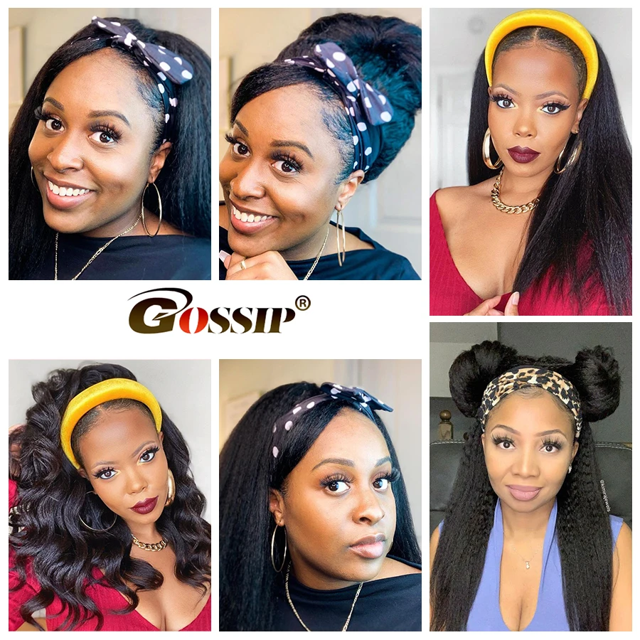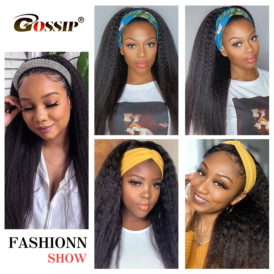 Парики из 150% натуральных волос, плотность парик с головной повязкой, для чернокожих женщин, парик с головной повязкой прямые