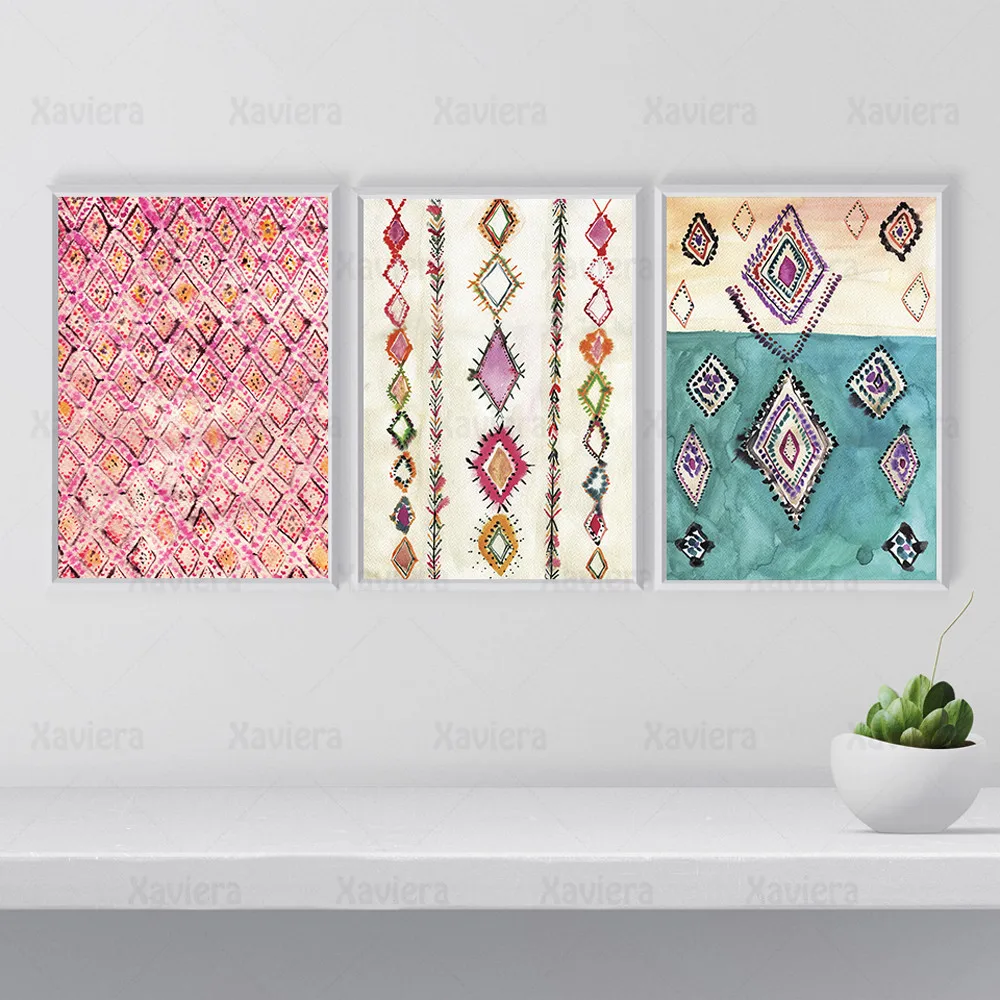 Розовый марокканский ковер, Картина на холсте на стену в стиле бохо, абстрактная Настенная картина Цветочные постеры и принты, домашний декор для спальни