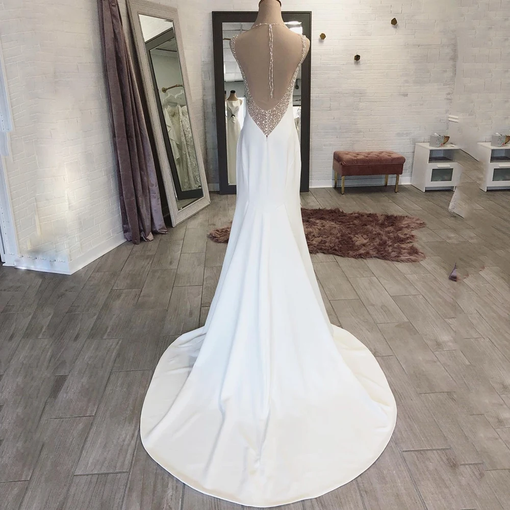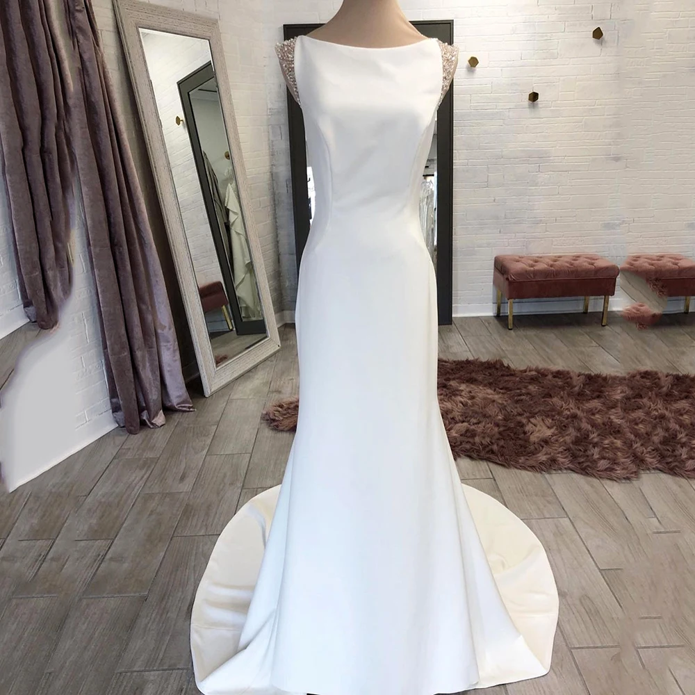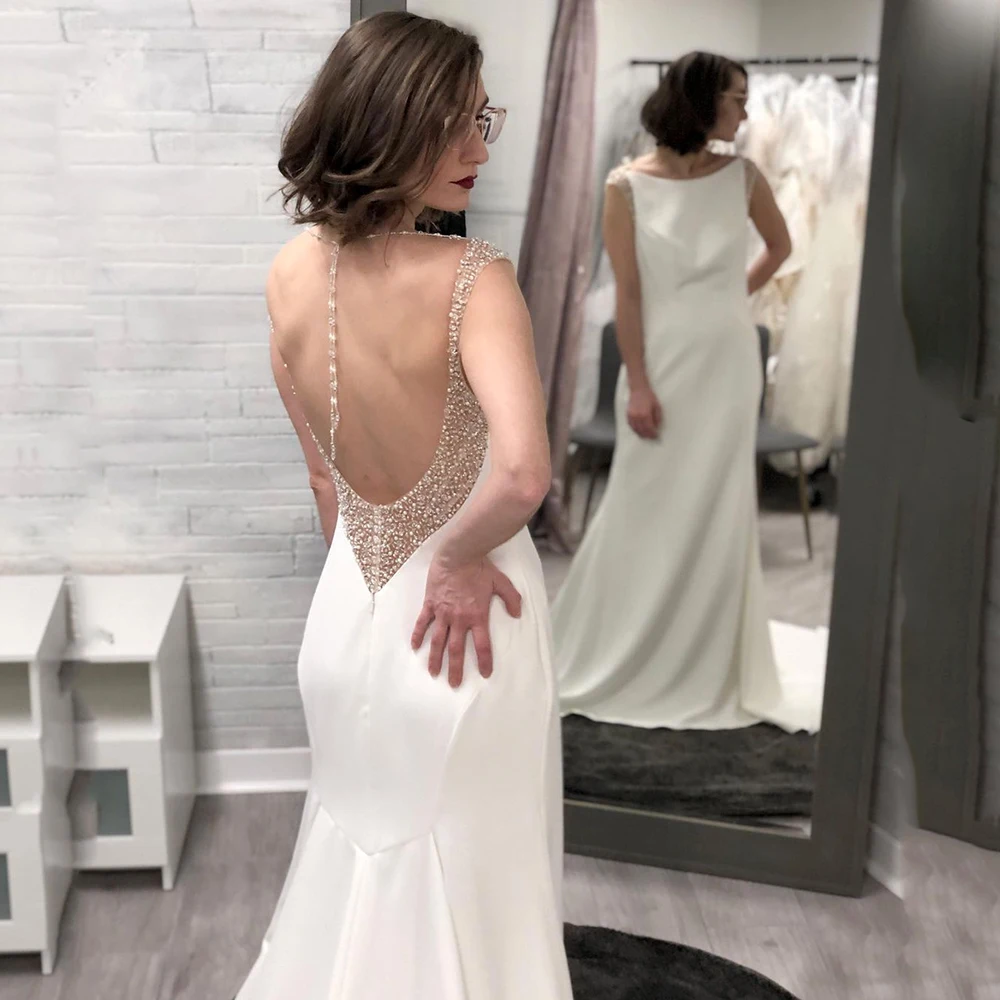 Женское атласное свадебное платье без рукавов, с вырезом-лодочкой и открытой спиной