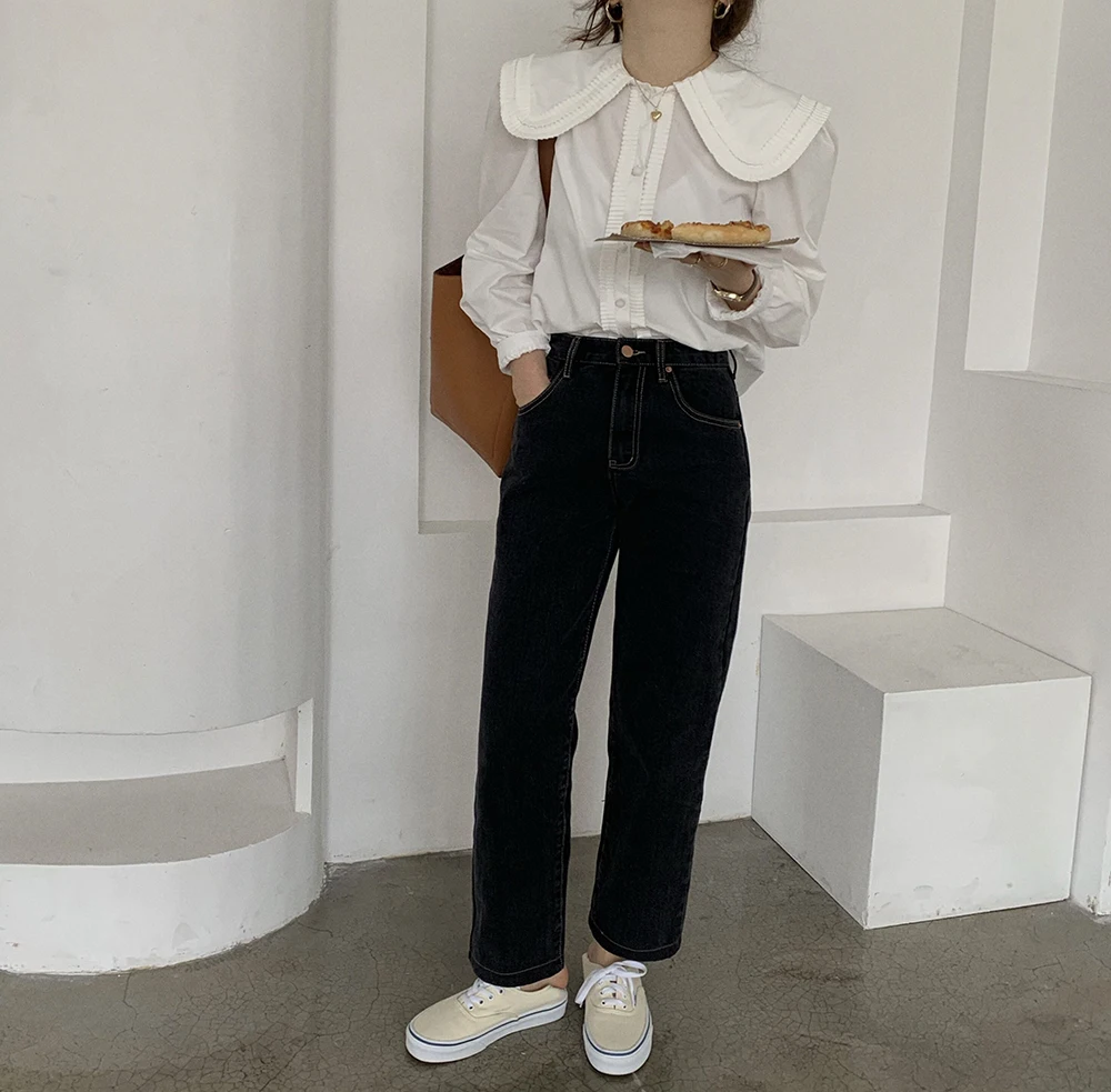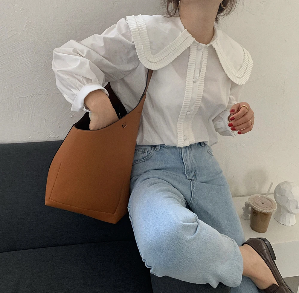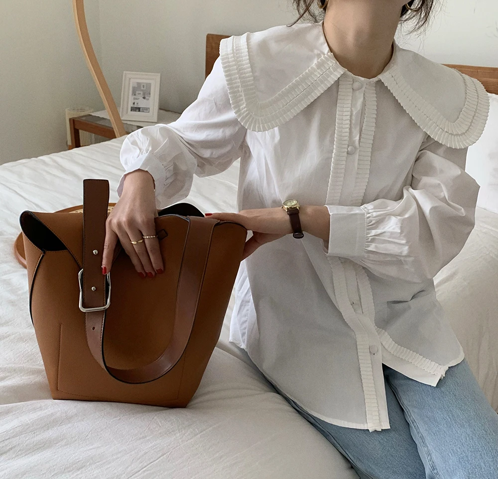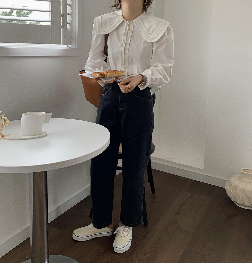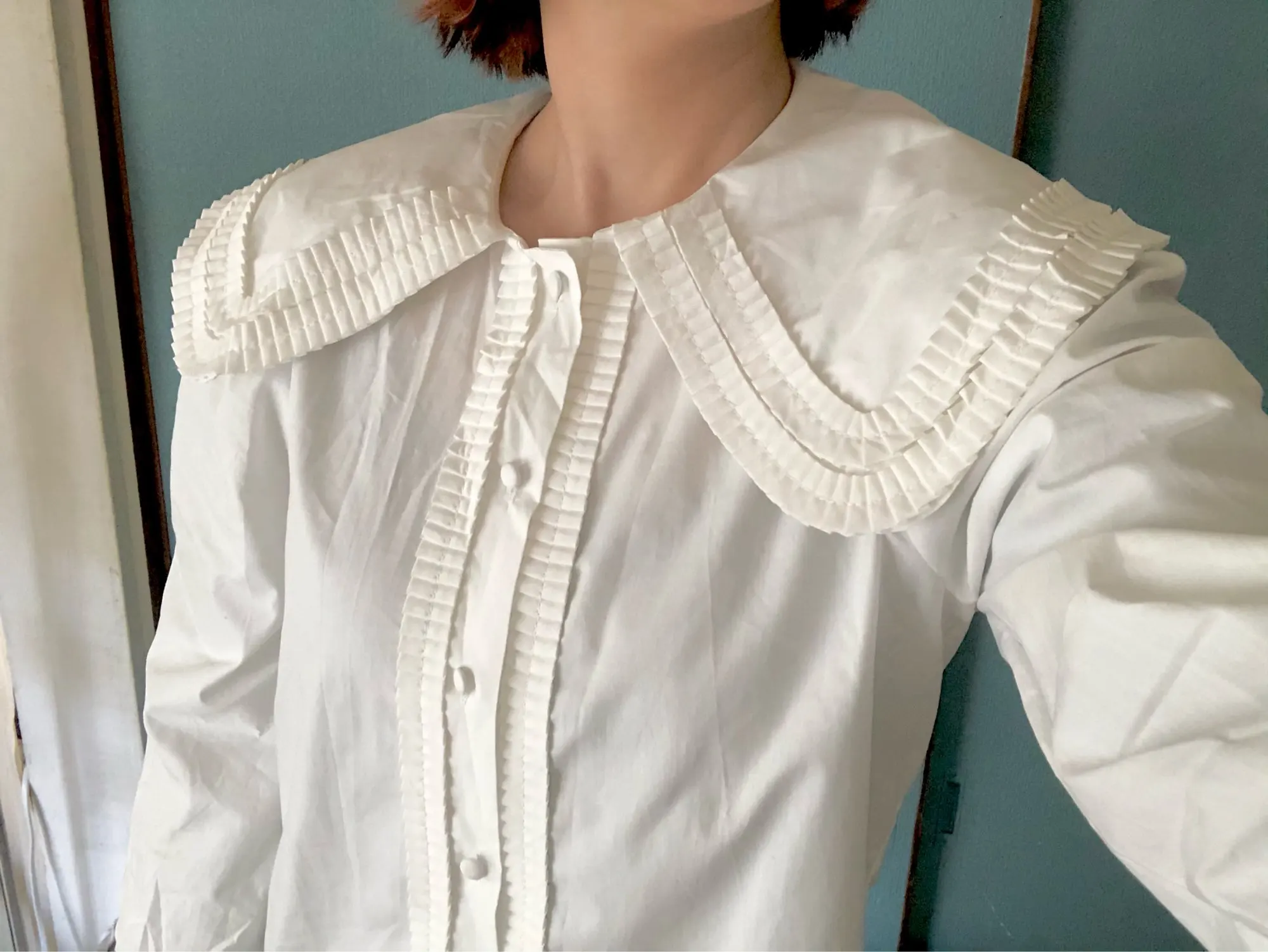 Рубашка Alien Kitty Женская шикарная в стиле ретро, нежная плиссированная Элегантная блузка с воротником Питер Пэн и длинными рукавами, Короткие топы, весна 2021