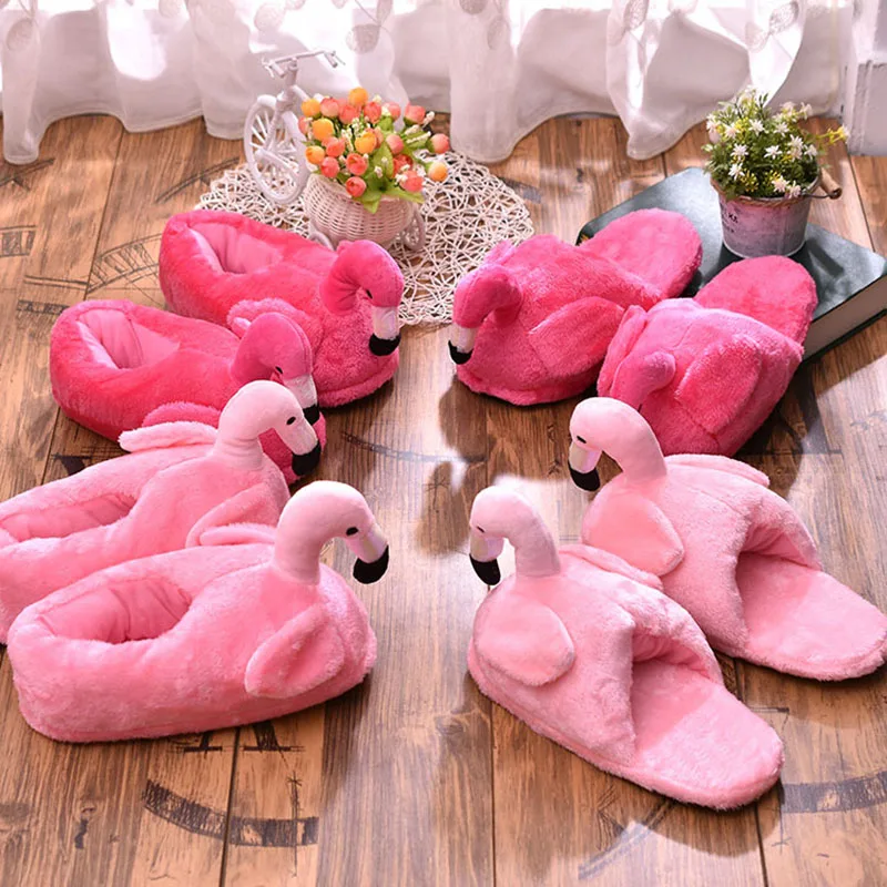 Зимние теплые хлопковые тапочки, сланцы с фламинго, плюшевые домашн...