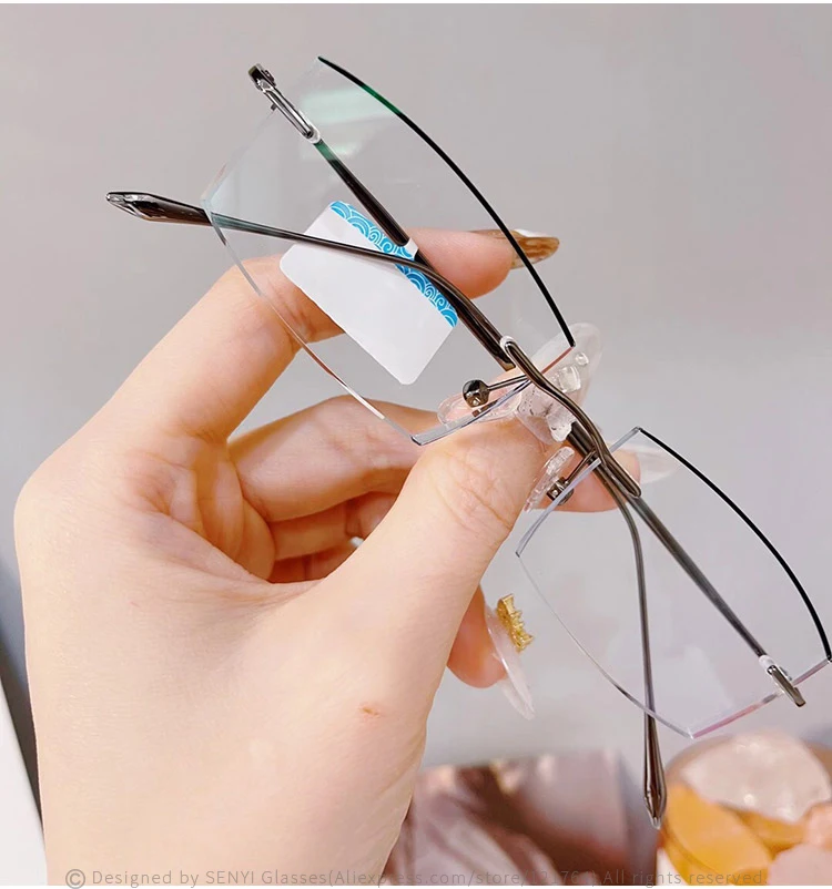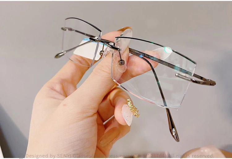 Очки для близорукости мужские без оправы, роскошные Простые и щедрые линзы без оправы, с блокировкой ромбовидной резки, в деловом стиле