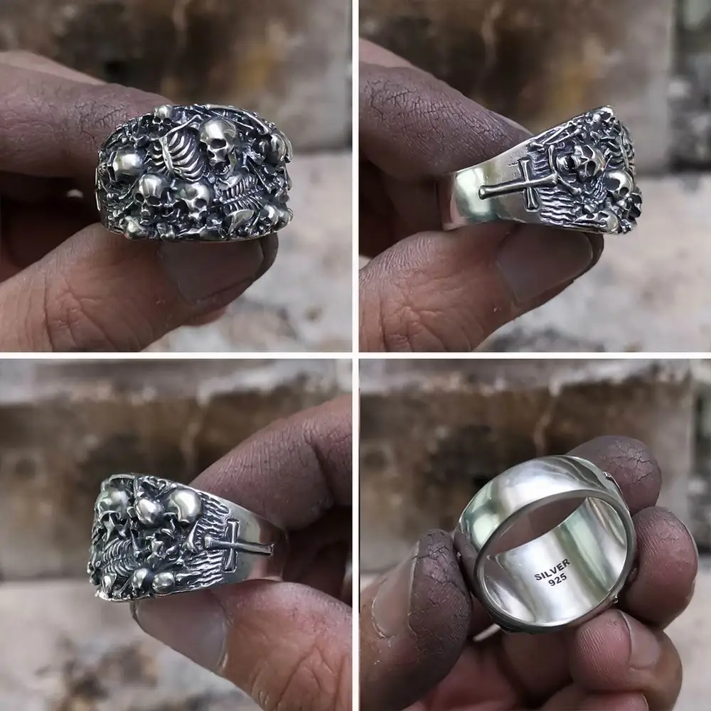 Мужское кольцо с черепами из серебра 925 пробы, байкер, панк, TA257, размер США от 7 до 15