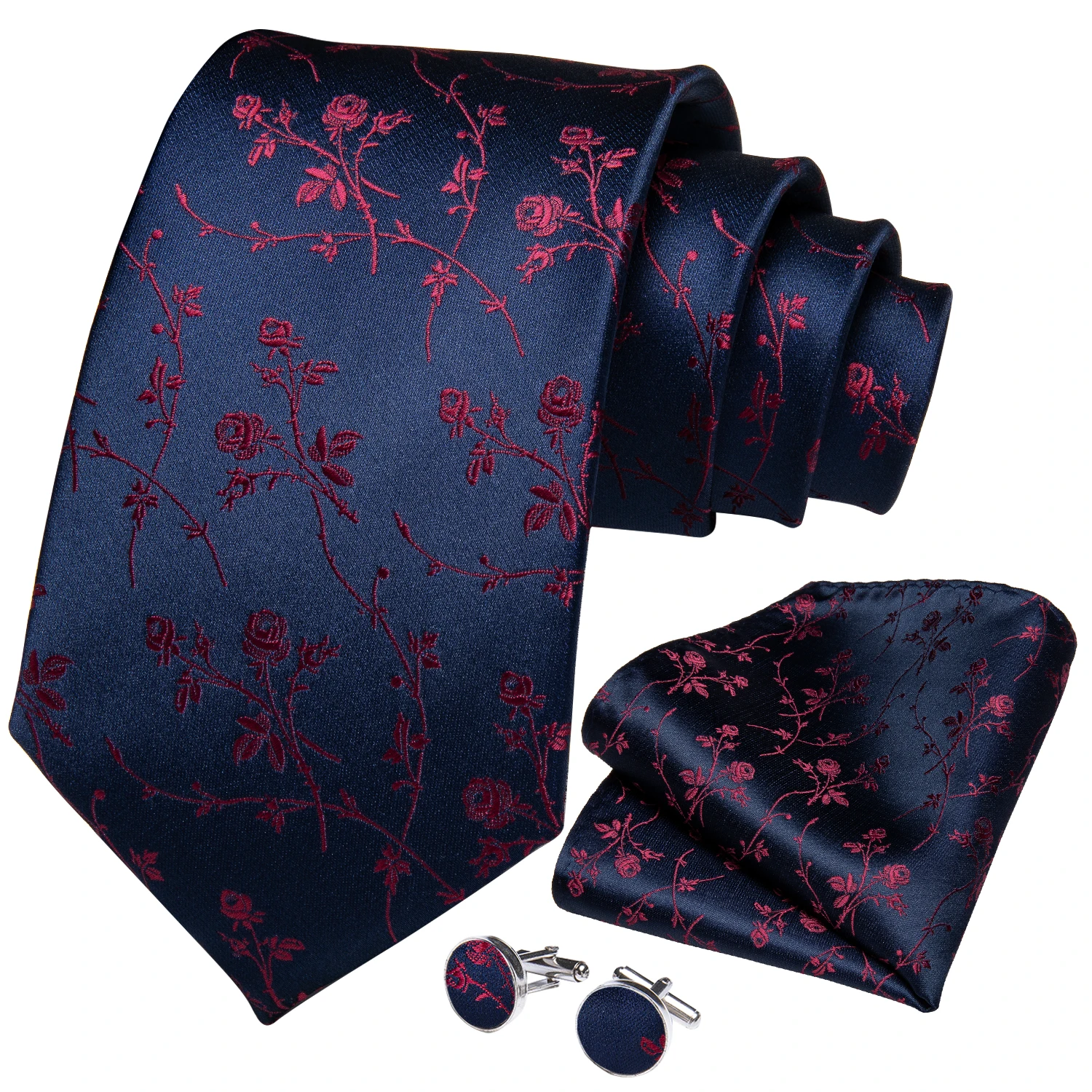 8 см 100% шелковые мужские галстуки модные красные цветочные синие галстуки платок запонки подарок для мужчин бизнес Свадебный галстук набор DiBanGu