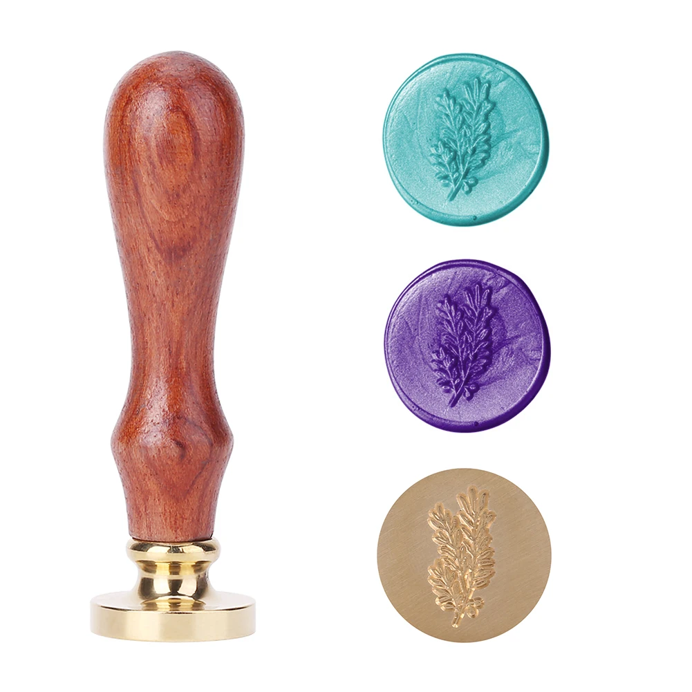 Восковая печать в стиле ретро с узором растений, деревянная ручка, ...
