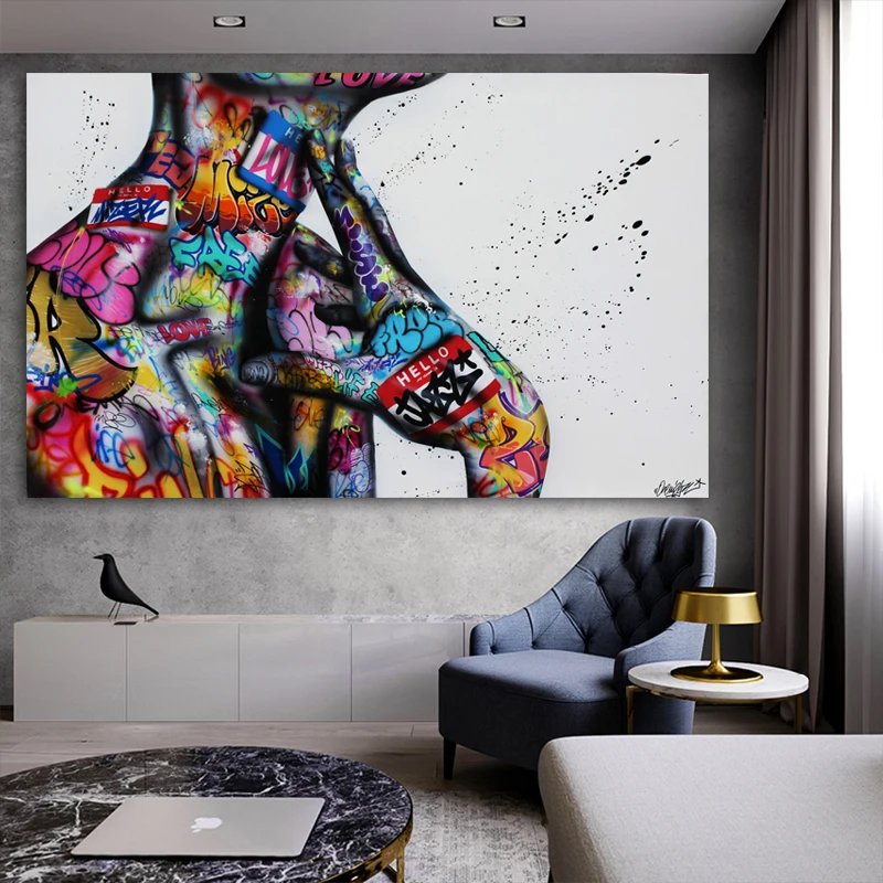Абстрактный сексуальный шейный картина маслом граффити холст картины Вдохновляющие постеры печати стены искусства Гостиная украшение дома