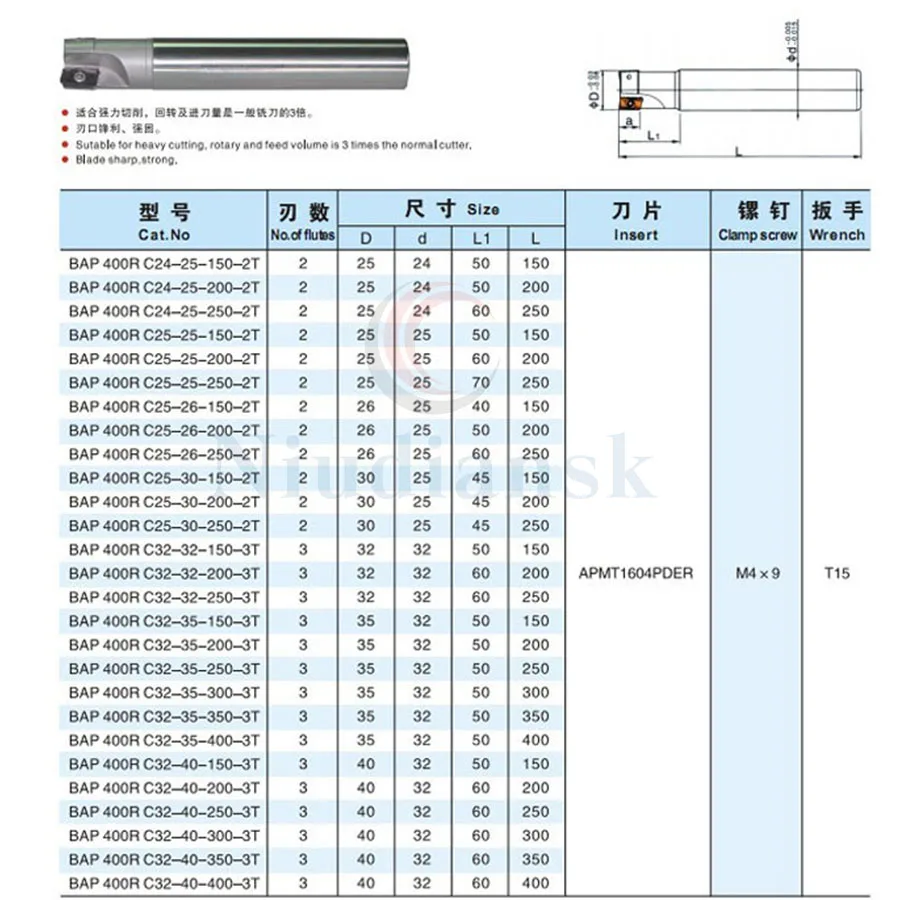 1 шт., Концевая фреза BAP400R C32 160-300 мм + 10 шт. APMT1604