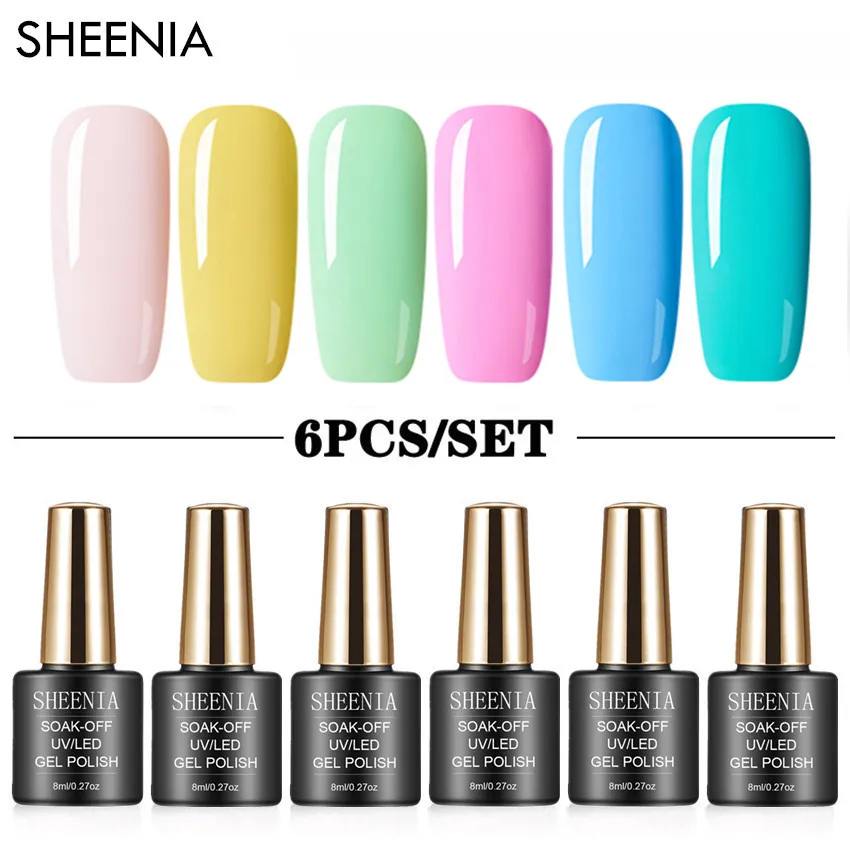 Набор гель-лаков 8 мл, 6 шт., гибридный лак, удаляемый замачиванием, УФ-гель, светодиодный Полупостоянный лак для маникюра, набор для базового и топового покрытия